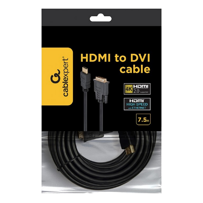 Cable HDMI to DVI 7.5m Cablexpert, male-male, GOLD, 18+1pin single-link, CC-HDMI-DVI-7.5MC