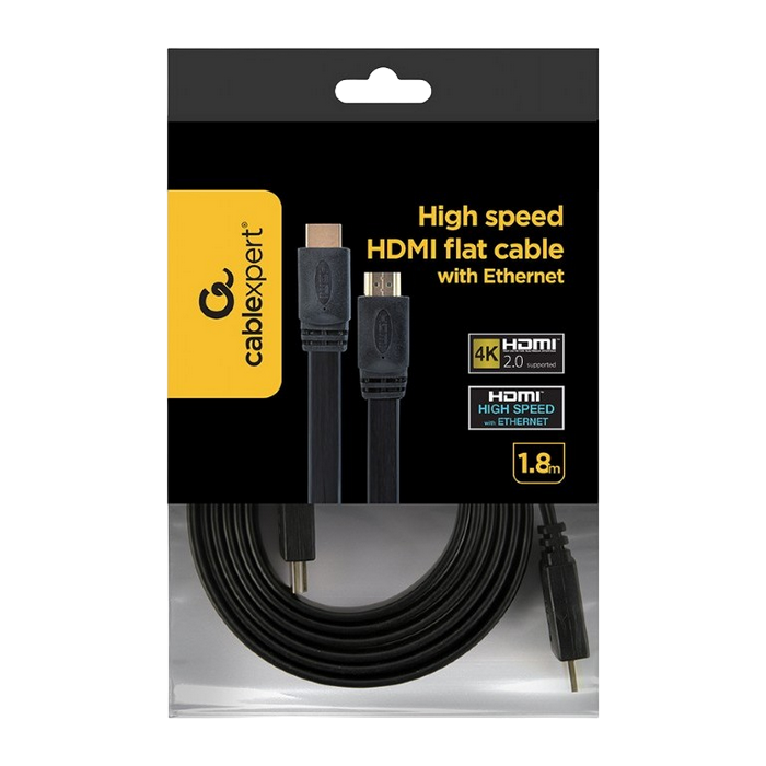 Cable HDMI to HDMI 1.8m Cablexpert FLAT male-male, 19m-19m (V1.4), Black