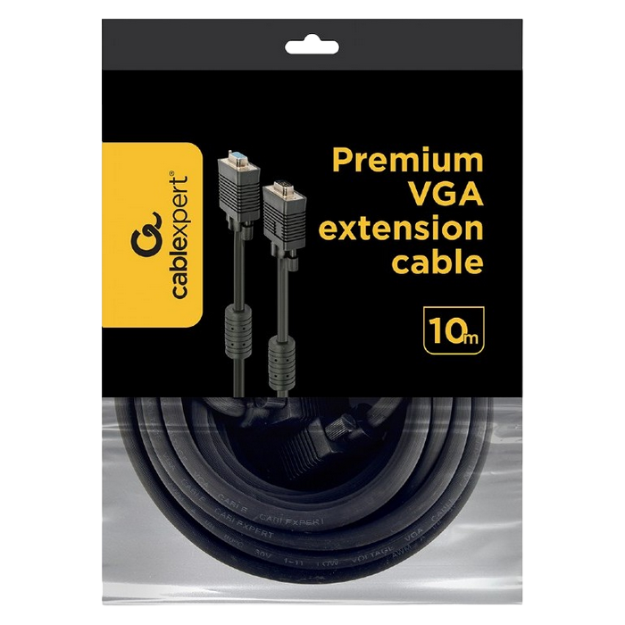 Cable VGA Premium Extension 10.0m, HD15M/HD15F Black, Cablexpert, dual-shield w/2*ferrite core