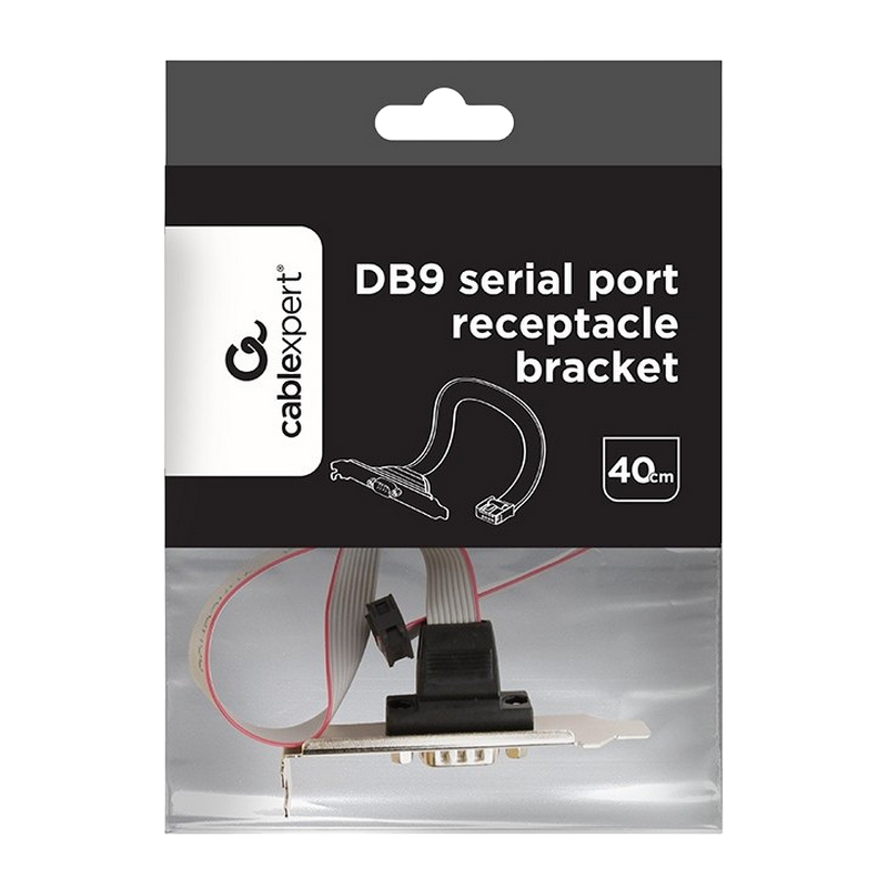 CableExpert CC-DB9ML-01, DB9 COM port receptacle on low-profile bracket, 40 cm flat cable