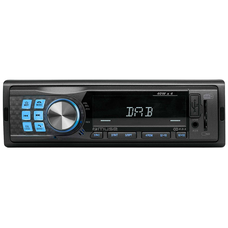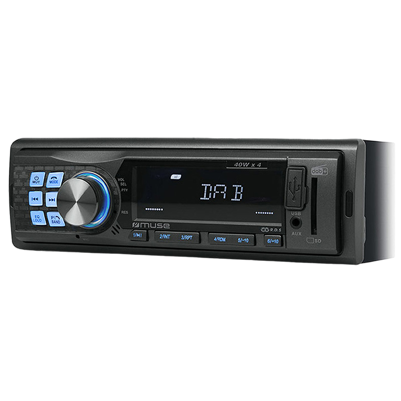 MP3 cu ID3 compatibil Radio DAB+/FM RDS PLL 36 de posturi presetate (18 FM, 18 DAB+) Port USB și cititor de carduri SD/MMC Putere de ieșire 4 x 40 W Display LCD multifuncțional Iluminare de noapte de culoare albastră