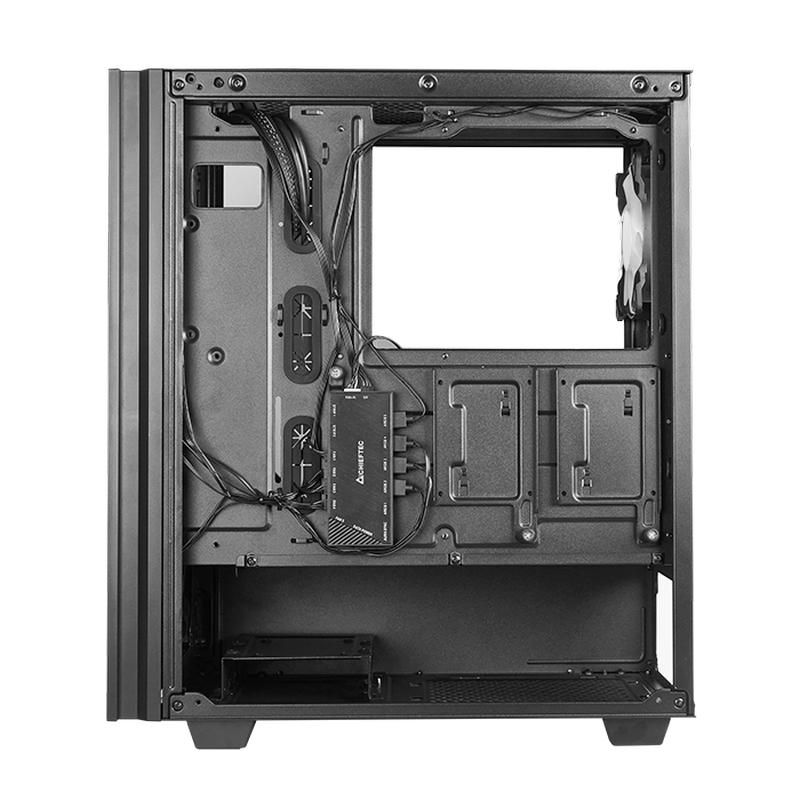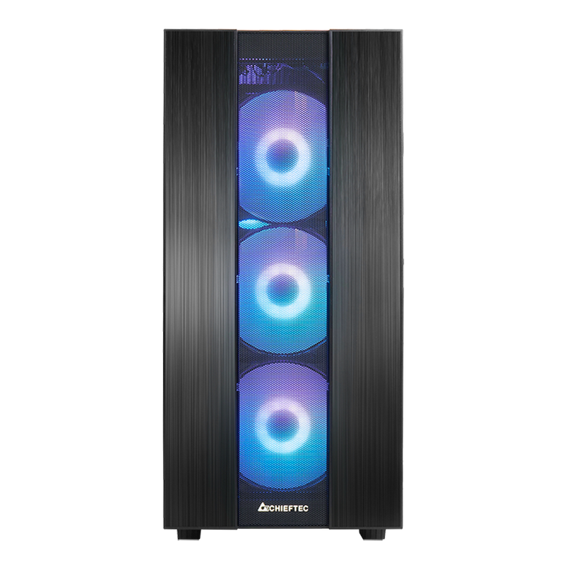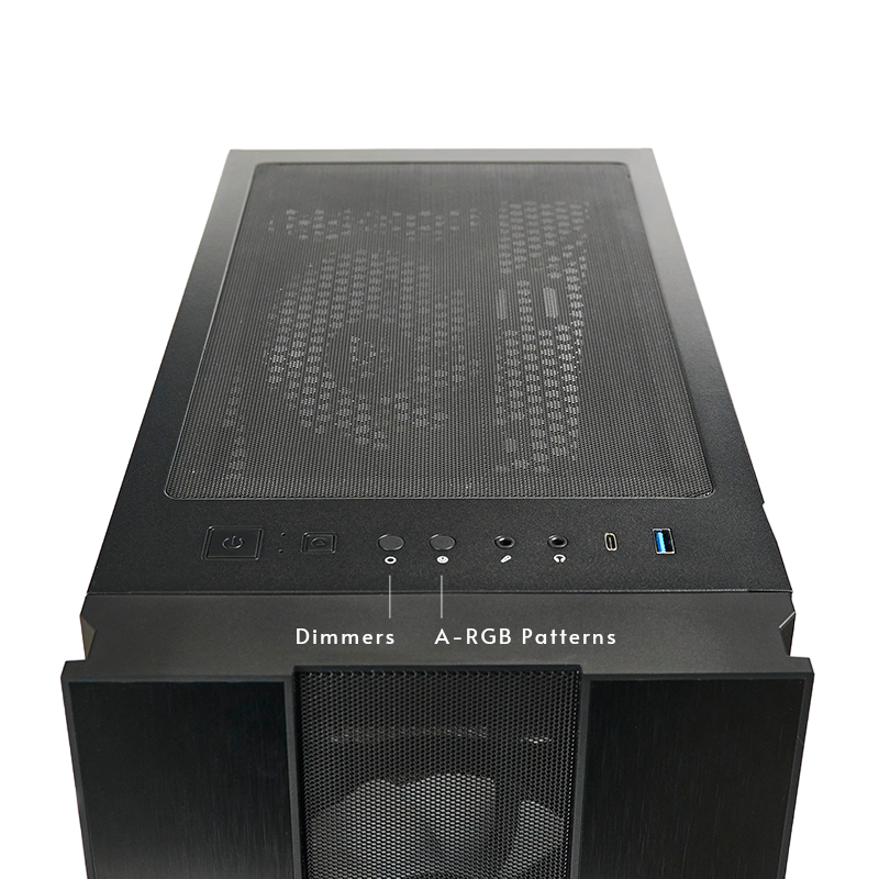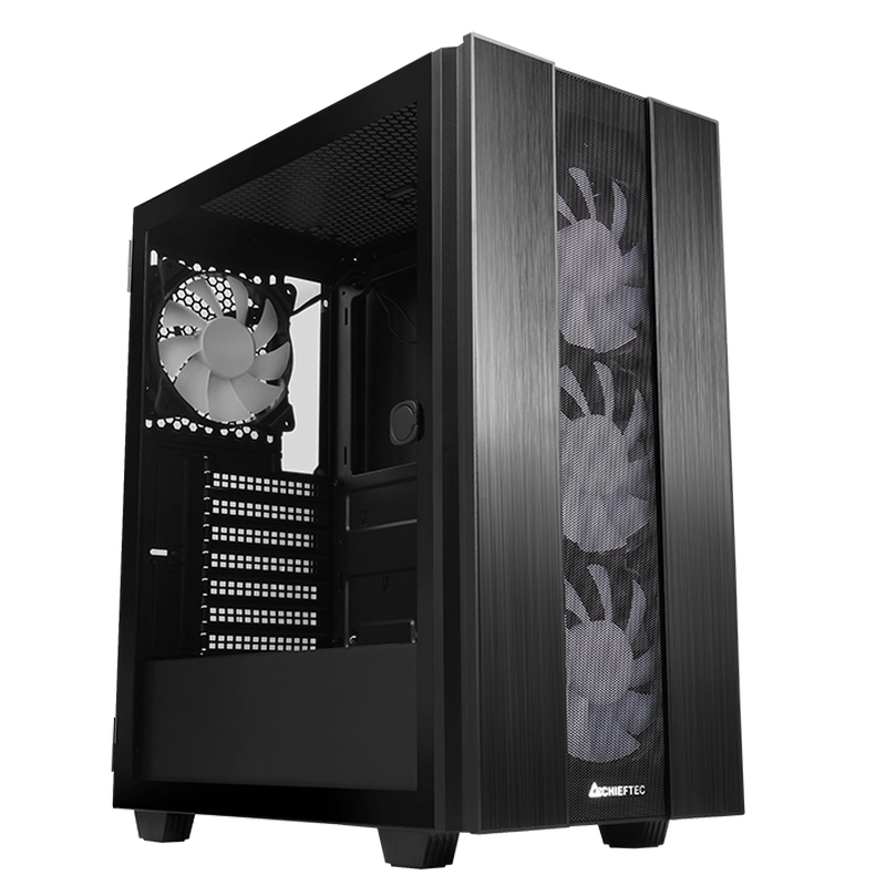 . Model HUNTER 2 Article no. GS-02B-OP EAN code 0753263078476 Weight (without/with package) 5.24kg / 6.15kg Color Black Material 0.5mm SPCC and tempered glass panel (side) Motherboard support Mini ITX, mATX, ATX Dimension (DxWxH) 408mm x 210mm x 464mm Drive bay internal ( 2x 3.5 or 1x 2.5 , 1x 3.5 ) and 2x 2.5 Power supply ATX PSU (optional, ~180mm) Front I/O 1x Type-C, 1x USB3.1 Gen 1, Audio-out (AZALIA / HD-Audio), Mic-In, RGB Brightness Button, RGB Modes Button Scope of delivery Screw set, instruction manual, A-RGB control Hub, 1x +5V A-RGB M/B SYNC cable, +12V 4PIN PWM cable, magnetic dust filter on top Front: 3x 120mm A-RGB rainbow fans pre-installed Rear: 1x 120mm A-RGB rainbow fan pre-installed Expansion slots 7 Cooling Compatibility Front: 2x 140mm or 3x 120mm fan or up to 360mm radiator Rear: 1x 120mm fan Top: 2x 140mm or 2x 120mm fan PSU Cover: 2x 120mm fan CPU cooler height (max.) 170mm VGA card length (max.) 320mm