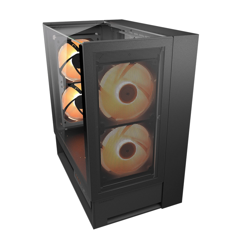Case ATX Cougar OmnyX w/o PSU 2x160front 2x160rear PWM ARGB fans Glass: Top & Side, RGB Hub 4xUSB3.0 2xUSB-C21x2.5" 2x3.5" RGB Button, Black
