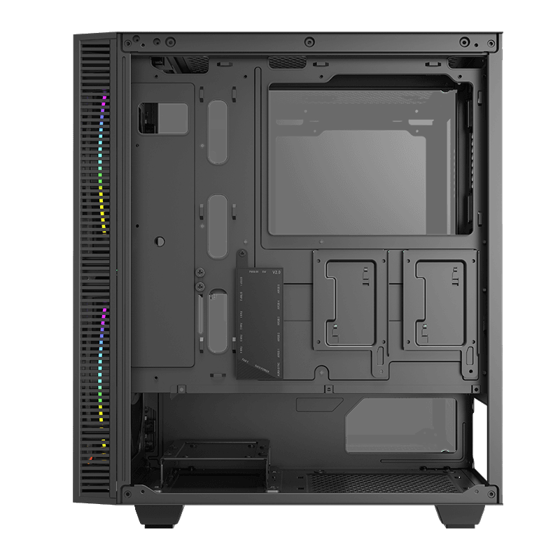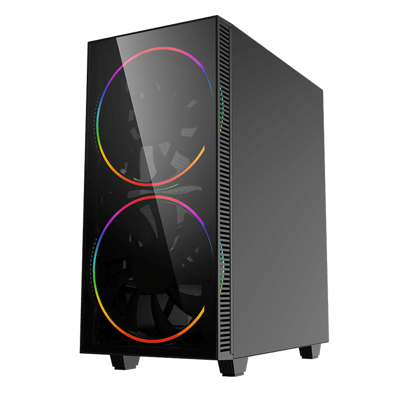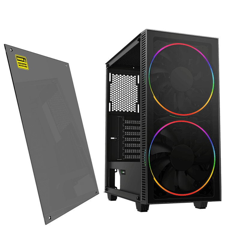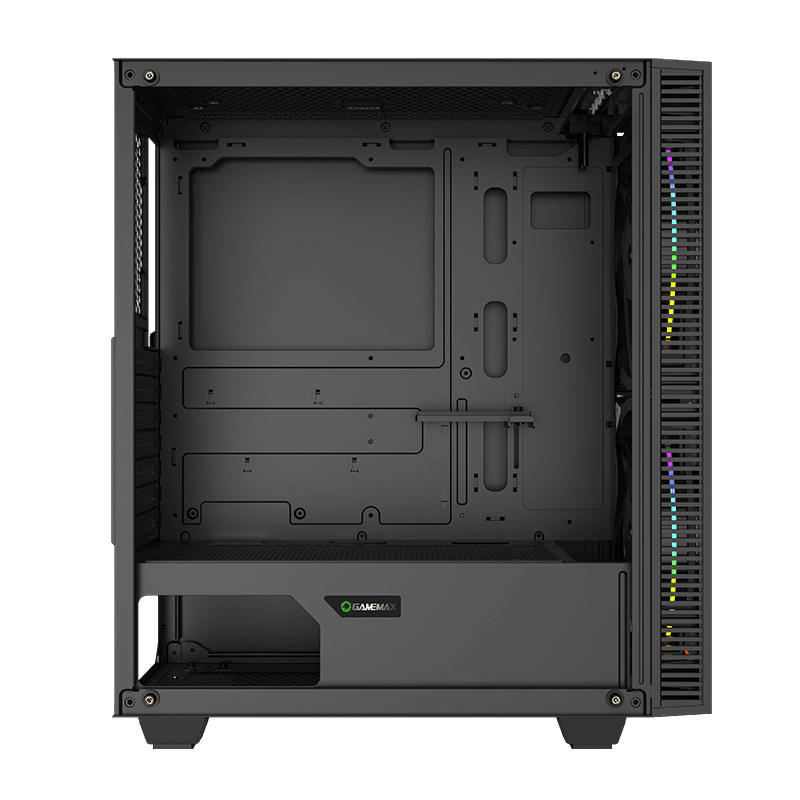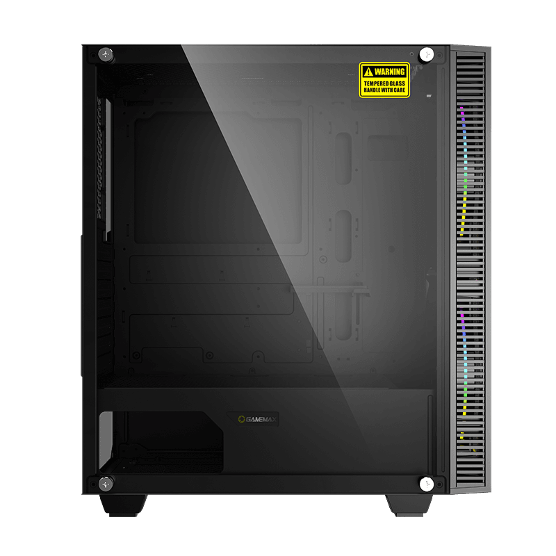 . Form Factor Midi ATX Tower Chassis SPCC : 0.5mm PSU Form Factor Bottom/ATX M/B Form Factor ATX、M-ATX、E-ATX (No fan on front) Front Panel ABS Top Panel metal cover Dust Cover Bottom and top cover with dust filter Slots *7 VGA Card Length up to 330mm CPU Cooler Height 170mm Cable Management Depth 22mm Side Panel Left Tempered Glass Right metal cover External Drive Bay(s) 5.25" (ODD) *0 3.5" *0 Internal Drive Bay(s) 3.5" (HDD) *2 2.5" (SSD) *2 I/O CONFIG Buttons *2 USB2.0 Port(s) *1 USB3.0 Port(s) USB3.1 GEN1 *1 HD Audio Support *1 Card Reader (Support) *0 P-Lock *0 RGB Controller *1 Controller max. fans *5 RGB and 3pin fan power RGB Controller max. LED strips *2 Remote (IR or RF) *Top RGB switch Cooling Fan Support Front 2 x 200mm ARGB Fan(Included) Top 2x120mm ,2x140mm (optional) Rear 1x120mm (Optional) Left Side 0 PSU Cover 2x120mm (Fan optional) Water Cooling Support (Radiator Size) Front 120mm, 140mm,240mm,280mm Top 120mm,240mm Rear 120mm*1 https://www.gamemaxpc.com/productkkk/showproduct.php?id=930