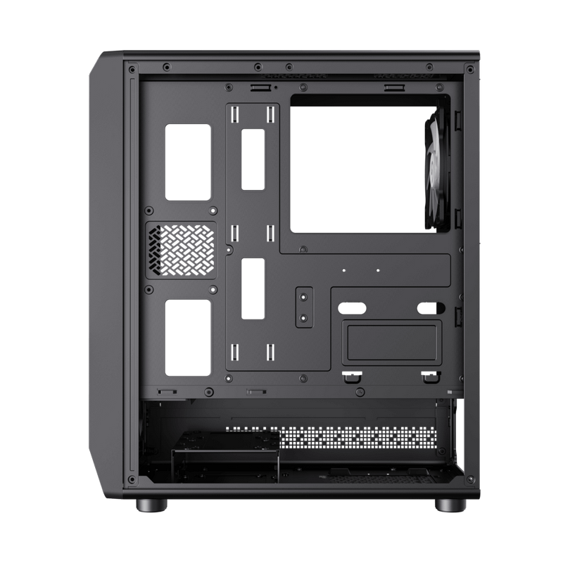 . Form Factor (Midi, Micro, Mini ITX, Full) Midi Tower Chassis SPCC: 0.4mm Chassis Black version PSU Form Factor Bottom/ATX M/B Form Factor EATX(280mm Max.),ATX,M-ATX,ITX Front Panel ABS Top Panel Metal cover Side Panel Left Tempered Glass Right Metal cover External Drive Bay(s) 5.25"(ODD) *0 3.5" *0 Internal Drive Bay(s) 3.5"(HDD) 1*3.5HDD+5*2.5SSD or 2*3.5HDD+3*2.5SSD or 3*3.5HDD+2*2.5SSD 2.5"(SSD) I/O Buttons *2 USB3.0 Port(s),USB2.0 Port *1x USB 3.0+1x USB 2.0 HD Audio Support Combo Audio(CTIA)*1 Type c *1(2.0 or GEN1 or GEN2) P-Lock *1 (optional) Controller max. fans *0 RGB Controller max. LED strips *0 Cooling Fan Support Front 3x120mm(Fan Included) ,2x140mm(Fan optional) Top 2x120mm(Fan Included) ,2x140mm(Fan optional) Rear 1x120mm (Fan Included) PSU Cover 2x120mm (Fan optional) Water Cooling Support Front 120mm, 140mm,240mm,280mm.360mm Top *0 Rear 120mm*1 Dust Cover Bottom and top cover with dust filter Slots *7 Dimensions Chassis (L)340*(W)200*(H)436mm Full Case (inc Fascia) (L)386*(W)205*(H)449mm Carton (L)*(W)*(H)mm VGA Card Length up to 330mm CPU Cooler Height 155mm Cable Management Depth 19mm