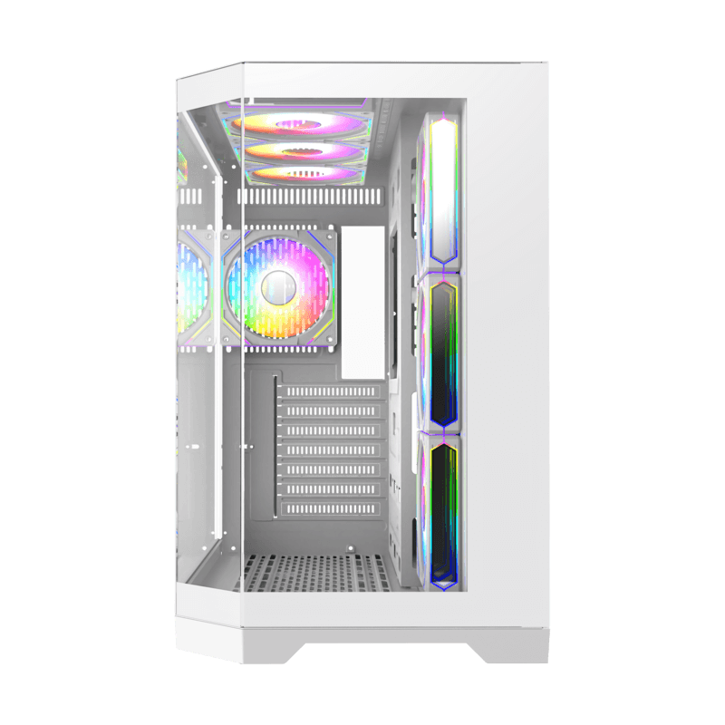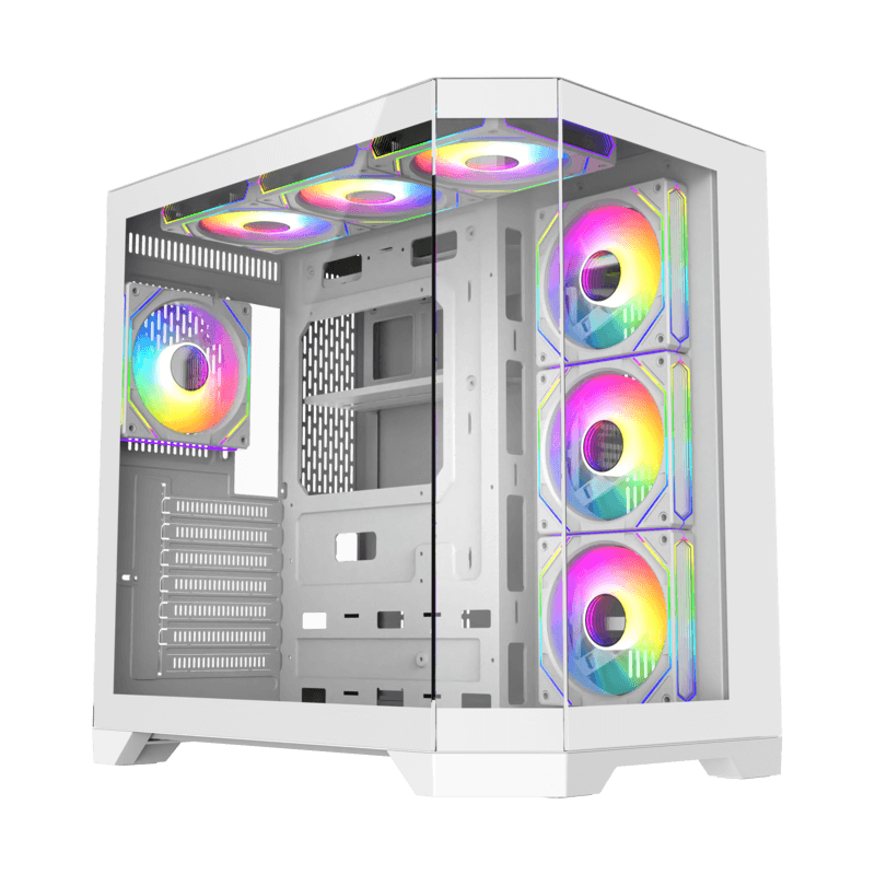 . MODEL HYPE-A White Form Factor (Micro, Mini ITX) MIDI Chassis 0.5mm SPCC PSU Form Factor ATX M/B Form Factor ATX,Micro ATX,Mini-ITX Front Panel Tempered Glass Top Panel metal cover Side Panel Left Full tempered glass Right Metal External Drive Bay(s) 5.25" (ODD) NO Internal Drive Bay(s) 3.5" (HDD) HDD*2 2.5" (SSD) SSD*3 I/O Buttons 3 USB3.0 Port(s) USB3.0*1 USB2.0 Port(s) USB2.0*2 Audio Support Combo Audio*1 Card Reader (Support) Not supported Fan Controller 6 port ARGB PWM HUB RGB Controller 6 port ARGB PWM HUB Controller max. fans 10 Remote (IR or RF) NO Cooling Fan Support Front NO Top 120mm*3 or 140mm*2 (FAN Optional) Rear 120mm*1 (FN12A-S8I*1) Left Side NO Right Side 120mm*3(FN12A-S8I*3) bottom 120mm*3 or 140mm*2(FAN Optional) Water Cooling Support Right Side 240mm*1,360*1 Top 120mm*1,240mm*1,280*1,360mm*1 Rear 120mm*1 Dust Cover Top and bottom with dust filter Slots 4 Dimensions Chassis 418*280*410 (L*W*H)mm Full Case (inc Fascia) 418*280*435 (L*W*H)mm Net Weight (Kg) 6.7kgs Gross Weight (Kg) 8.1kgs VGA Card Length MAX 400mm CPU Cooler Height 157mm Cable Management Depth ATX POWER 140/160/200mm