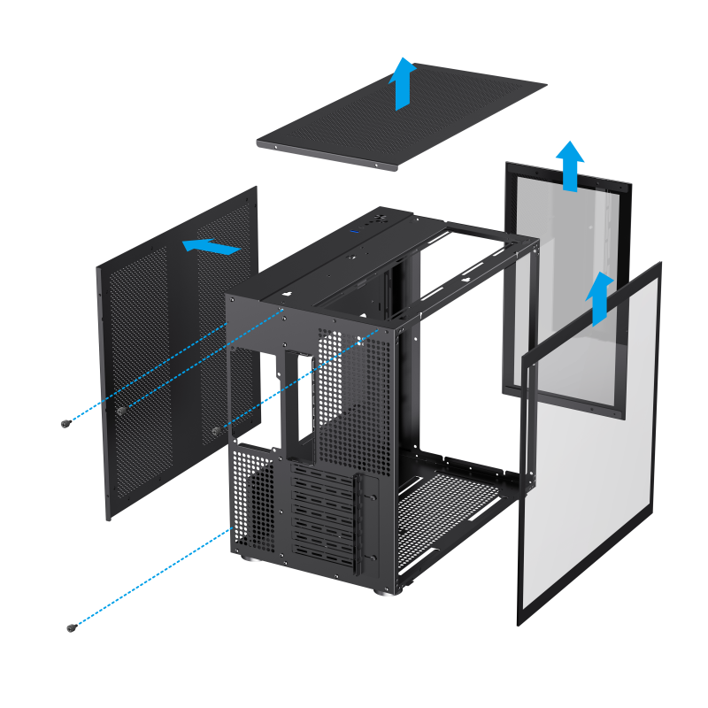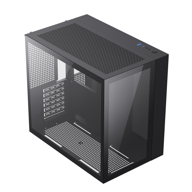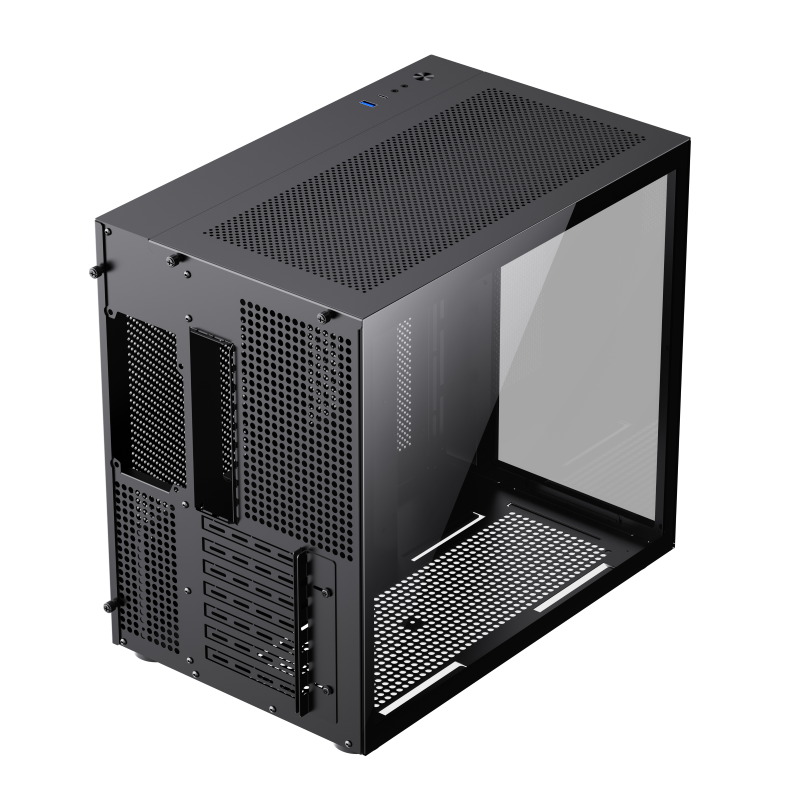 . Form Factor (Midi, Micro, Mini ITX, Full) Mid-Tower Chassis SPCC :1.5/0.8mm PSU Form Factor ATX M/B Form Factor ATX,Micro-ATX,Mini ITX Front Panel Tempered Glass Top Panel ABS,Steal Side Panel Left Tempered Glass Right Steal External Drive Bay(s) 3.5" 3.5" x 1+SSDx 3 or SSD*4 Internal Drive Bay(s) 3.5" (HDD) 3.5" x 1+SSDx 3 or SSD*4 2.5" (SSD) I/O Buttons *1 USB3.0 Port(s) *1(TYPE A*1+TYPE C*1) HD Audio Support *1 Cooling Fan Support Top 3x120mm (Fan optional) Rear 1x120mm (Fan optional) MB 3x120mm (Fan optional) Bottom 3x120mm (Fan optional) Water Cooling Support(Radiator Size) Top 360mm*1 MB 360mm*1 Bottom 360mm*1 Dust Cover Bottom with dust filter Slots *7 Dimensions Chassis (L)415*(W)268*(H)*380mm Full Case (inc Fascia) (L)420*(W)273*(H)*399mm Carton (L)460*(W)340*(H)*496mm Net Weight (Kg) 7.5kgs Gross Weight (Kg) 8.8kgs VGA Card Length 360mm*1 CPU Cooler Height 170mm Cable Management Depth Max 34mm