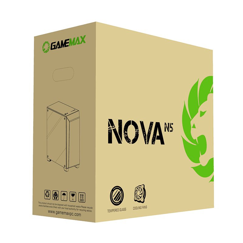 Case ATX GAMEMAX Nova N5, w/o PSU, 0.5mm, 1x120mm, FRGB, ARGB LED strip, Tempered Glass, 1xUSB3.0, 1xUSB2.0, 2x3.5", 2x2.5", Black