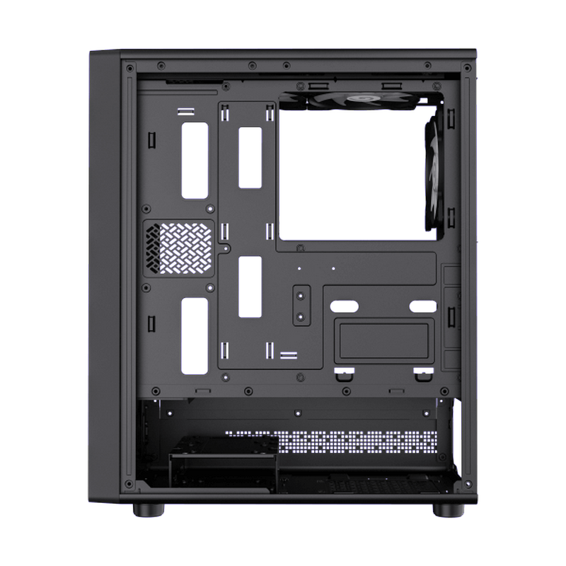 . Form Factor (Midi, Micro, Mini , Full) Midi Tower Chassis SPCC :0.4mm PSU Form Factor Bottom/ATX M/B Form Factor ATX、M-ATX、ITX Front Panel ABS,MESH Top Panel metal cover Side Panel Left Tempered Glass Right metal cover External Drive Bay(s) 5.25" (ODD) *0 3.5" *0 Internal Drive Bay(s) 3.5" (HDD) 1*3.5HDD+5*2.5SSD or 2*3.5HDD+3*2.5SSD or 3*3.5HDD+2*2.5SSD or 2*3.5HDD+2*2.5SSD 2.5" (SSD) I/O Buttons *2 USB1.1 Port(s) *0 USB2.0 Port(s) *1 USB3.0 Port(s) *1 USB3.1 Port(s) *0 HD Audio Support Combo Audio(CTIA)*1 Type C *1(480Mbps) P-Lock *1 RGB Controller Master fan built-in Controller max. fans *0 RGB Controller max. LED strips *0 Remote (IR or RF) *0 Cooling Fan Support Front 3x120mm(FN12A-S6) Top 2x120mm(FN12A-S6) ,2x140mm (Fan optional) Rear 1x120mm (FN12A-M6) Left Side 0 PSU Cover 2x120mm (Fan optional) Water Cooling Support Front 120mm, 240mm,360mm Top 120mm, 240mm(RAM Height ≤30mm) Rear 120mm*1 Dust Cover Bottom and top cover with dust filter Slots *7 Dimensions (L)340*(W)200*(H)436mm VGA Card Length up to 330mm CPU Cooler Height 155mm Cable Management Depth 19mm