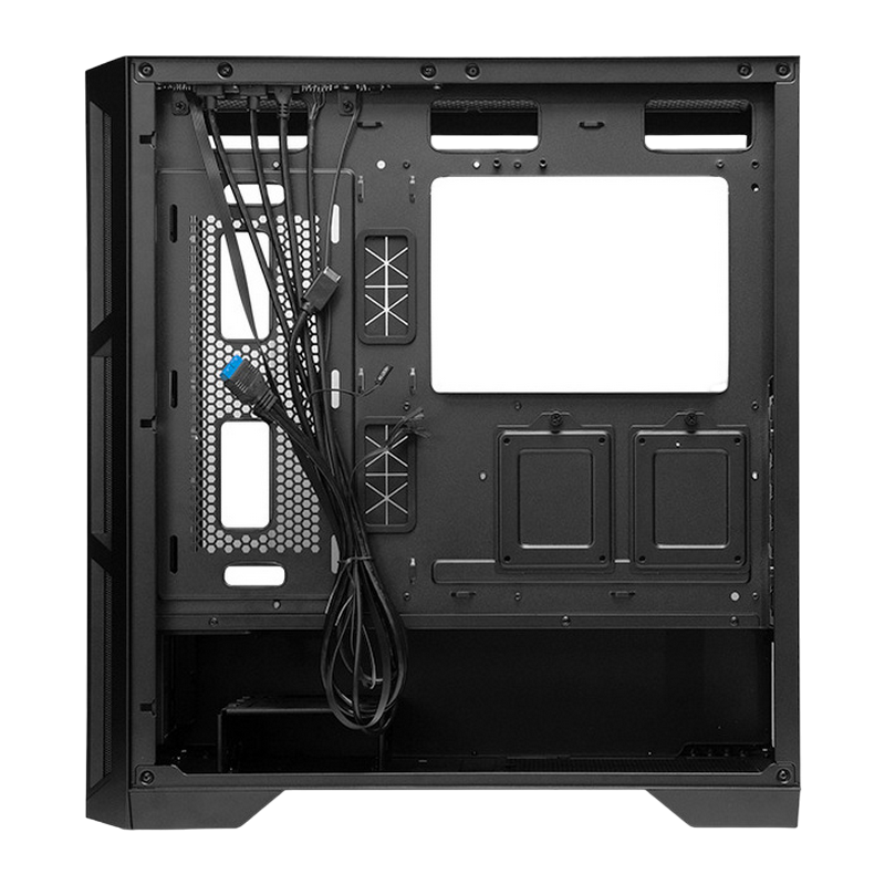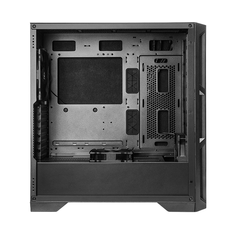 . PN: GA-01B-Q-OP Model APEX Q Article no. GA-01B-Q-OP EAN code 753263078643 Color Black Material Material 0.6mm SPCC; Sound-absorbing material added to the front, left and right panels Motherboard support Mini ITX, M-ATX, ATX, E-ATX Dimension (DxWxH) 465mm x 230mm x 495mm Weight (without/with package) 7.30 kg / 8.75 kg Drive bay external - Drive bay internal 3x 2.5“ and 1x 3.5“ / 2x 2.5“ and 2x 3.5“ Power supply ATX PSU (optional, ~220mm) Front I/O 1x USB3.2 Gen2 Type C, 2x USB3.0, Audio-out (AZALIA / HD-Audio), Mic-In Scope of delivery Set of screws, instruction manual Front: 1x 140mm PWM fans pre-installed Rear: 1x 140mm PWM fan pre-installed PSU cover: 1x 120mm PWM fan pre-installed Expansion slots 7 Cooling Compatibility Front: 3x 120 / 3x 140 / 240 radiator / 280 radiator / 360 radiator / 420 radiator Top: 3x 120 / 2x 140 / 240 radiator / 280 radiator / 360 radiator Rear: 120 / 140 PSU Cover : 2 x 120 Side: 2 x 120 CPU cooler height (max.) 175mm VGA card length (max.) 400mm