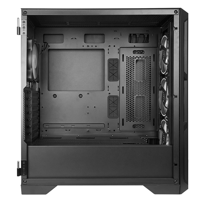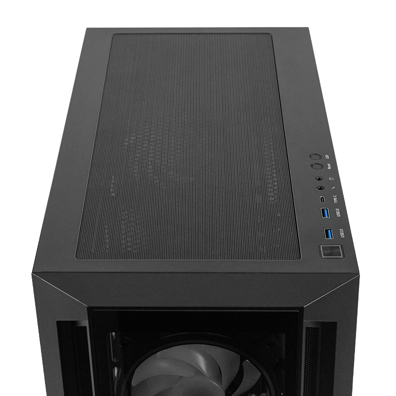 . PN: GA-01B-TG-OP Model APEX Article no. GA-01B-TG-OP EAN code 0753263078520 Color Black Material Material 0.6mm SPCC and tempered glass at left side panel Motherboard support Mini ITX, M-ATX, ATX, E-ATX Dimension (DxWxH) 465mm x 230mm x 495mm Weight (without/with package) 8.0 kg / 9.50 kg Drive bay external - Drive bay internal 3x 2.5“ and 2x 3.5“ Power supply ATX PSU (optional, ~220mm) Front I/O 1x USB3.2 Gen2 Type C, 2x USB3.0 , Audio-out (AZALIA / HD-Audio), Mic-In, RGB Mode Button Scope of delivery Set of screws, instruction manual RGB control hub (DF-200) with 3PIN +5V M/B Sync and SATA power cable Front: 3x 120mm A-RGB rainbow fans pre-installed Rear: 1x 120mm A-RGB rainbow fan pre-installed Expansion slots 7 Cooling Compatibility Front: 3x 120mm or 3x 140mm or 240mm radiator or 280mm radiator or 360mm radiator or 420mm radiator Top: 3x 120mm or 2x 140mm or 240mm radiator or 280mm radiator or 360mm radiator Rear: 1x 120mm or 1x 140mm PSU Cover : 2 x 120mm fan Side: 2 x 120mm fan CPU cooler height (max.) 175mm VGA card length (max.) 400mm