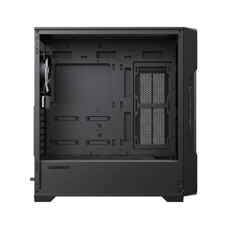 . MODEL SPECIFICATION Form Factor (Midi, Micro, Mini ITX, Full) TOWER Chassis SPCC :0.6mm PSU Form Factor Bottom/ATX M/B Form Factor E-ATX、ATX、M-ATX、ITX Front Panel ABS,Mesh Top Panel Metal cover Side Panel Left Tempered Glass Right metal cover 5.25" (ODD) *0 3.5" *0 3.5" (HDD) *2 2.5" (SSD) *3 1*3.5HDD+3*2.5SSD or 2*3.5HDD+2*2.5SSD I/O Buttons *3 USB2.0 Port(s) *2 USB3.0 Port(s) *1 USB3.1 Port(s) *0 Audio Support *1 (COMBO AUDIO) RGB Controller *1 (built-in Master-Fan) Controller max. fans *8 Cooling Fan Front 3x120mm ARGB Fan (FN12A-M6+2xFN12A-S6) Top 3x120mm ,2x140mm (Fan optional) Rear 1x12cm ARGB Fan (FN12A-S6) M/B Cover 2x120mm (Fan optional) PSU Cover 2x120mm (Fan optional) Water Cooling Support Front 120mm, 140mm,240mm,280mm,360mm Top 120mm, 140mm,240mm,280mm,360mm Rear 120mm M/B Cover 120mm, 240mm Dust Cover Bottom, right side panel and top cover with dust filter Slots *7 Carton & Logo GAMEMAX Chassis (L)415*(W)210*(H)470mm Full Case (inc Fascia) (L)465*(W)210*(H)485MM Carton (L)532*(W)262*(H)515MM VGA Card Length up to 410mm(front cover w/o fan) CPU Cooler Height 165mm SPS Length up to 265mm(front cover w/o Water Cooling) Cable Management Depth 25mm