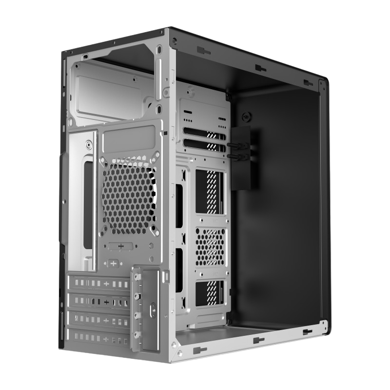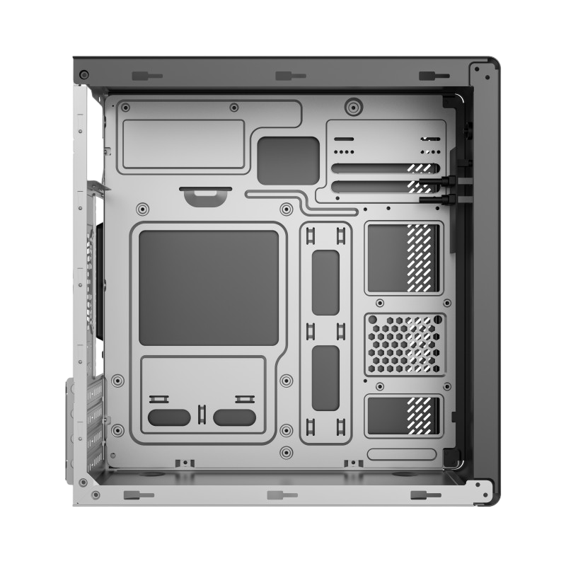 . Model Micro ATX Chassis SPECIFICATION Form Factor (Midi, Micro, Mini ITX, Full) Micro Chassis SPCC,SGCC Mixed( L type 0.6mm inner 0.4mm) PSU Form Factor TOP/ATX M/B Form Factor Micro-ATX、Mini-ITX Front Panel Metal Top Panel Metal Side Panel Left Metal cover Right Metal cover External Drive Bay(s) 5.25" (ODD) *0 3.5" *0 Internal Drive Bay(s) 3.5" (HDD) *1 2.5" (SSD) *2 I/O Buttons *1 USB2.0 Port(s) *1 USB3.0 Port(s) *1 Type-C Port(s) *1(Optional) Combo Audio Support *1 Card Reader (Support) *0 P-Lock *0 Features Kensington lock,Pad lock,Alarm Switch,electronic lock(Optional) Cooling Fan Support Front 0 Top 0 Rear 1x92/80(Fan optional) Left Side 0 PSU Cover 0 Water Cooling Support Front 0 Top 0 Rear 0 Dust Cover 0 Slots *4 Dimensions Chassis (L)330*(W)170*(H)350mm Full Case (inc Fascia) (L)343*(W)173*(H)353mm Carton - Net Weight (Kg) 3 kgs Gross Weight (Kg) 4 kgs VGA Card Length up to 320mm CPU Cooler Height 140mm Cable Management Depth 14mm
