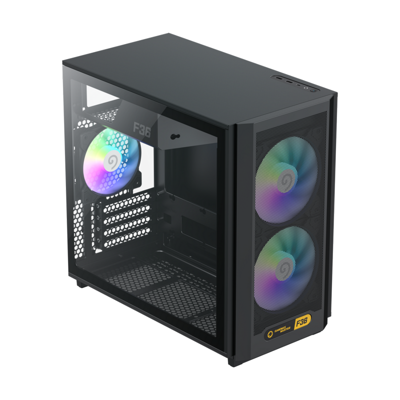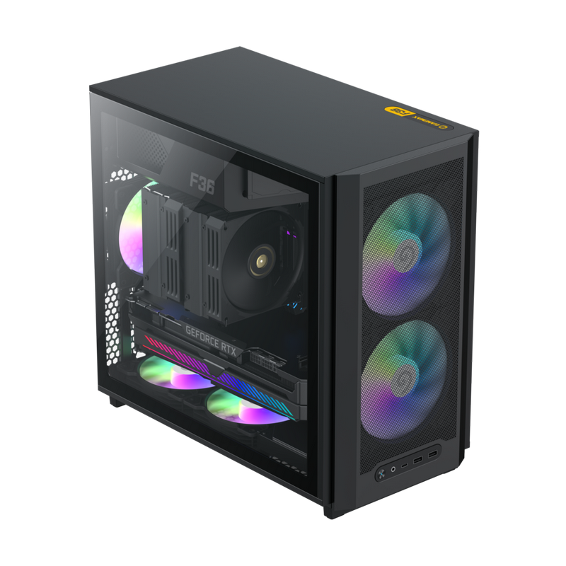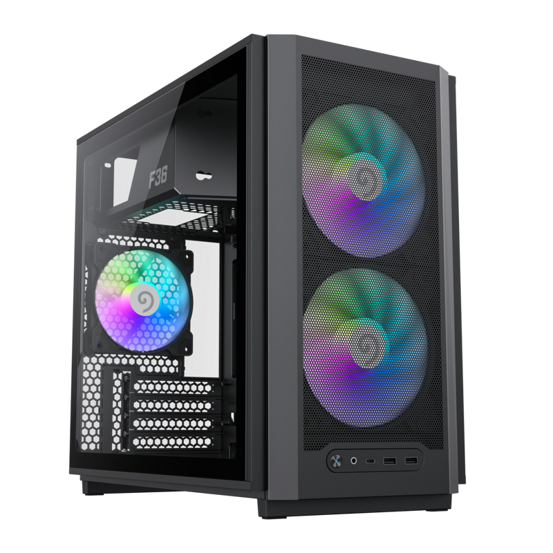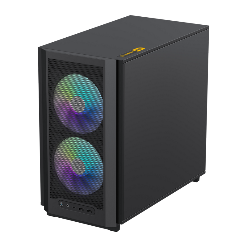 . Form Factor (Midi, Micro, Mini ITX, Full) Mini Tower Chassis SPCC :.08/0.6mm mixed PSU Form Factor UP/ATX M/B Form Factor M-ATX(200mm), ITX Front Panel Metal cover Top Panel Metal cover Side Panel Left Tempered glass Right metal cover External Drive Bay(s) 5.25" (ODD) *0 3.5" *0 Internal Drive Bay(s) 3.5" (HDD) *2 2.5" (SSD) *3 I/O Buttons *1 USB1.1 Port(s) *0 USB2.0 Port(s) *0 USB3.0 Port(s) *2 Type-C *1(GEN2) Combo Audio *1 Card Reader (Support) *0 Fan Controller *0 RGB Controller *0 Controller max. fans *0 RGB Controller max. LED strips *0 Remote (IR or RF) *0 Cooling Fan Support Front 2x 120mm (included) / 2x 140mm (optional) Top 0 Rear 1x 120mm (included) Left Side *0 Bottom 3x 120mm / 2x 140mm (optional) WaterCooler Radiator Front 1x 120mm/240mm/280mm (optional) Top *0 Rear 1x 120mm (optional) Dust Cover Slots Bottom cover with dust filter Dimensions *4 Chassis (L)386*(W)216*(H)367mm Full Case (inc Fascia) (L)419*(W)216*(H)388mm Carton (L)486*(W)299*(H)503mm VGA Card Length 350mm CPU Cooler Height 169mm SPS Length 33mm