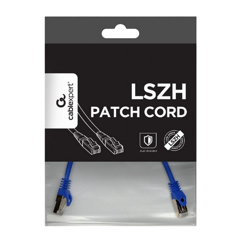 Cat.6A SFTP 0.25m, Blue, Copper, PP6A-LSZHCU-B-0.25M, Cablexpert, Low Smoke Zero Halogen (LSZH)