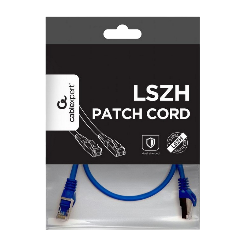 Cat.6A SFTP 0.5m, Blue, Copper, PP6A-LSZHCU-B-0.5M, Cablexpert, Low Smoke Zero Halogen (LSZH)