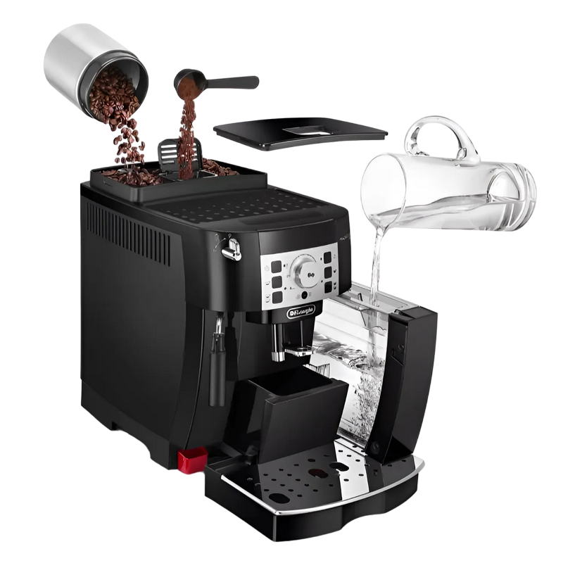 Putere: 1450 W Tip de cafea folosita: Cafea macinata, Cafea boabe Tensiunea pompei : 15 bar Volumul rezervorului de apă : 1,8 L Capacitatea rezervorului pentru boabe : 250 g Pregătirea simultană a două căni: Да Reglarea gradului de măcinare: Да