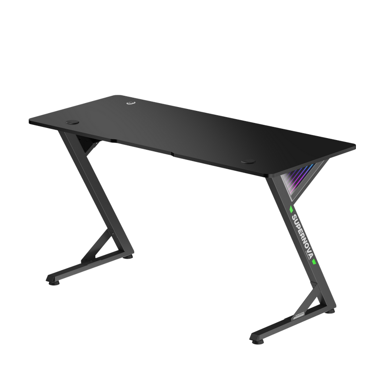 Lățimea desktopului: 136 cm Materialul mesei: MDF Material cadru: Oțel, Plastic Greutatea maximă: 75 kg Iluminare: Da Orificiu pentru cabluri: Da