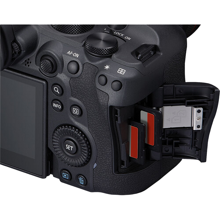 Компактная камера Canon EOS R6 Mark II позиционируется как камера для скоростной съёмки. Она оснащена новым полнокадровым 24,2MP CMOS сенсором, который работает в паре с процессором обработки изображений Canon Digic X и обеспечивает съемку со скоростью 40 к/с (практически) без искажений. Система автофокуса Dual Pixel CMOS AF II включает 1053 точки и покрывает 100% кадра. Автофокус способен выявлять головы и глаза людей, животных, следить за транспортными средствами – автомобилями, мотоциклами, самолетами (включая вертолеты) и поездами. Устройство позволяет изменять светочувствительность в диапазоне от ISO 200 до ISO 102400. Эта камера предназначена для создателей контента, она содержит встроенную 5-осевую систему стабилизации изображения, которая компенсирует до 8 ступеней экспозиции. Она снимает видео UHD 4K/60p с передискретизацией, используя всю ширину сенсора — больше никакого кадрирования.