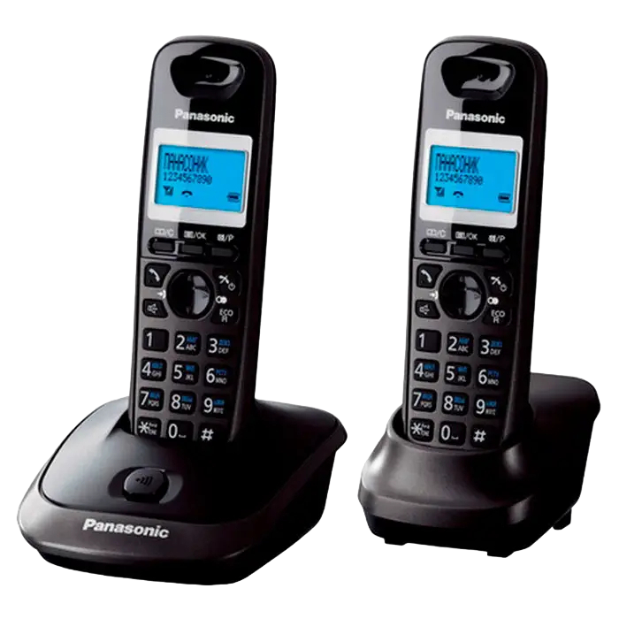 Модель с 2-мя трубками в комплекте, АОН, Caller ID (журнал на 50 вызовов), спикерфон на трубке, телефонный справочник (50 записей), полифонические мелодии звонка, кириллица на дисплее, время/дата на дисплее, повторный набор номера, переход в Эко режим одним нажатием, до 18 ч в режиме разговора, до 170 ч в режиме ожидания https://www.panasonic.com/ru/consumer/telecom-products/phones/dect-phones/kx-tg2512.html