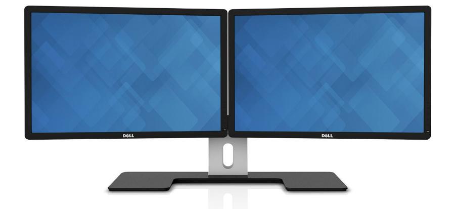 Dell Dual Monitor Stand, Easily snap on two Dell monitor panels with VESA support, multi-adjustment capabilities such as Tilt, swivel, height adjust and horizontally slide the monitors on the stand, The U-shaped base occupies less desk space