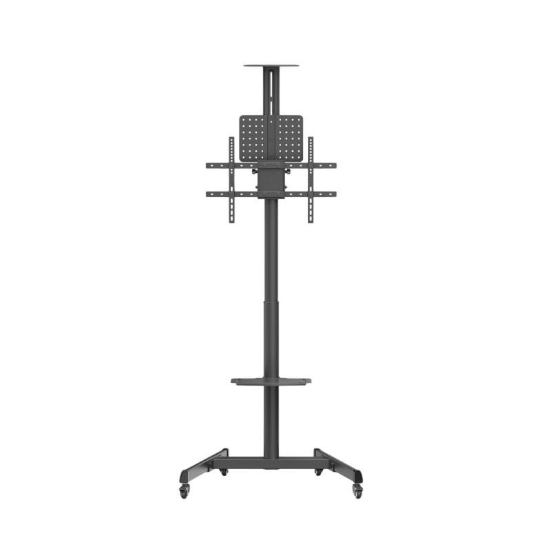 Telescope Height-Adjustable Steel TV Cart with Crank Handle For most 37"-70" Displays The perfect solution for versatile and mobile display needs. Designed to support a wide range of screen sizes, this sturdy steel TV cart offers smooth height adjustments, making it easy to position the TV or monitor at the ideal viewing level. Whether for office presentations, classroom teaching or home entertainment, the cart's maneuverability, stability and adjustable features provide a convenient and adaptable way to display digital content. Its sleek, durable design blends seamlessly into any environment, combining functionality with style. Sturdy steel construction Toolless tilt Pegboard storage panel: conveniently organizes TV boxes, cables, and other accessories Effortless TV height adjustment with crank handle Portrait or landscape viewing Height adjustable camera & equipment shelf Heavy-duty casters with locking mechanism: can be moved or stopped at will