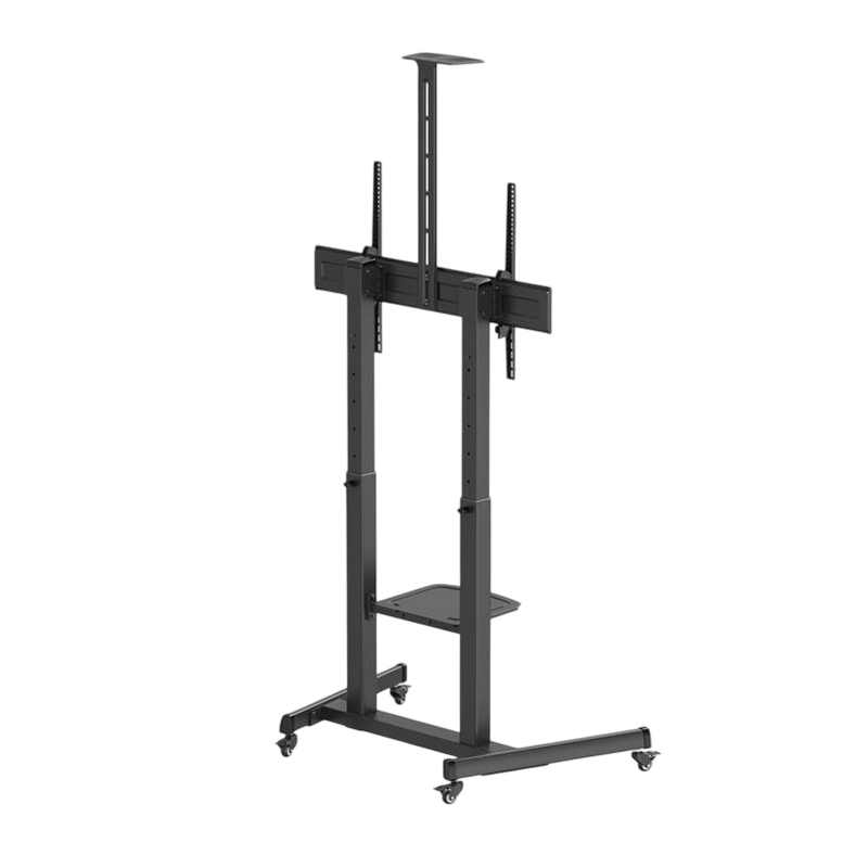 Display/TV Mount Stand Gembird TVS-100T-03, 60-100"; Black, VESA; max 120kg, TV floor stand with caster wheels