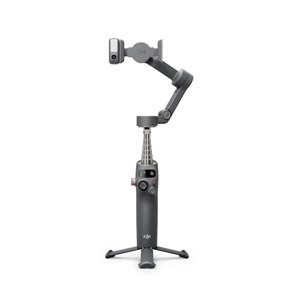 Trepiedul incorporat are o lungime de 67 mm si asigura stabilitate pentru filmari stationare. Conectivitatea este asigurata prin Bluetooth 5.3, garantand o legatura rapida si stabila cu smartphone-ul.