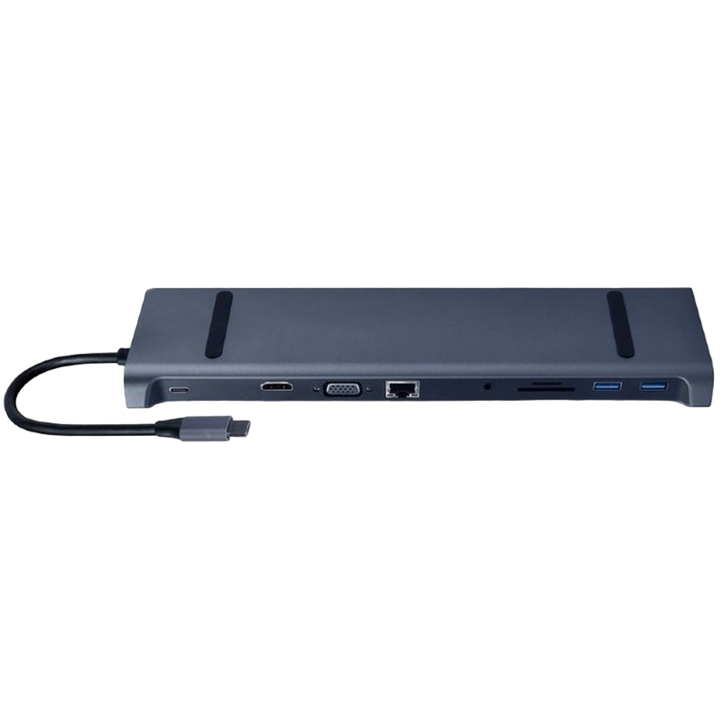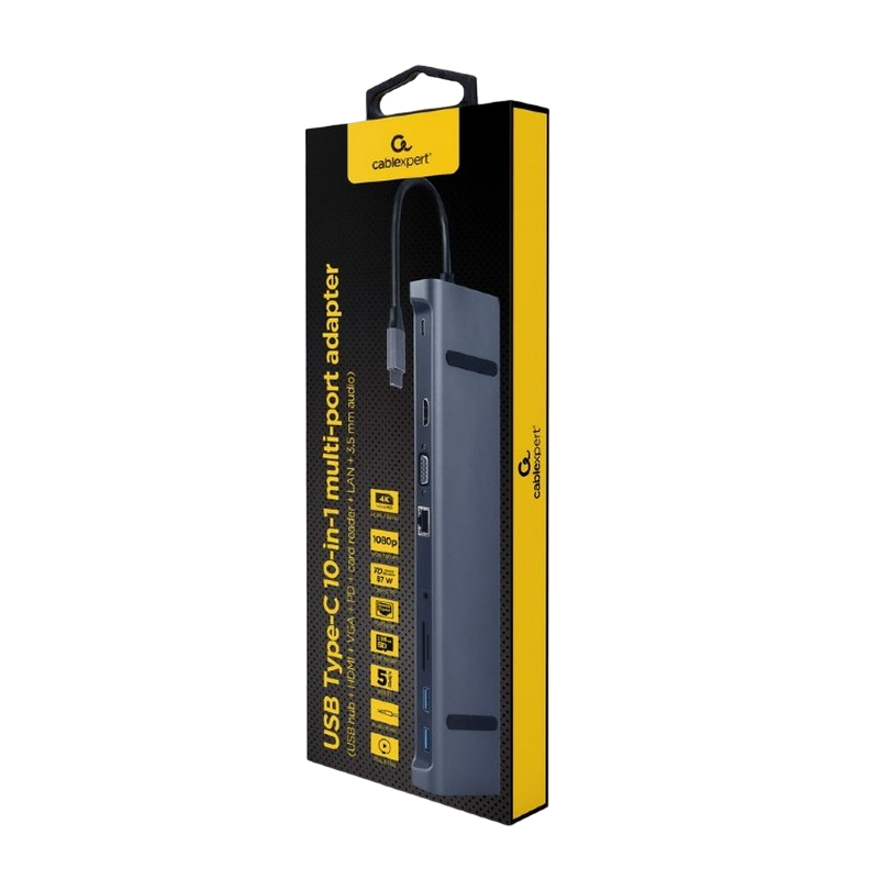 Docking Station Gembird A-CM-COMBO10-01, 3xUSB3.1, 2xUSB-C, LAN, HDMI, VGA, SD, MicroSD, 3.5mm, PD 87W, Metal housing, Space grey