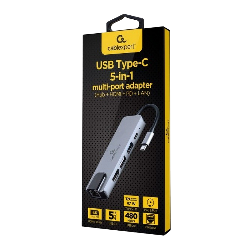. Input USB 3.0/3.1 Type-C male; 12 cm cable length USB output 1 x Type-A (female), USB 3.1 Gen 1 (5 Gbps); 1 x Type-A (female) USB 2.0 HDMI output Type-A (female), max. resolution: 4K @ 30 Hz USB Type-C PD port Max. PD 2.0 up to 87 W LAN RJ45 port Dimensions 103 x 434 x 12 mm Net weight 50 g