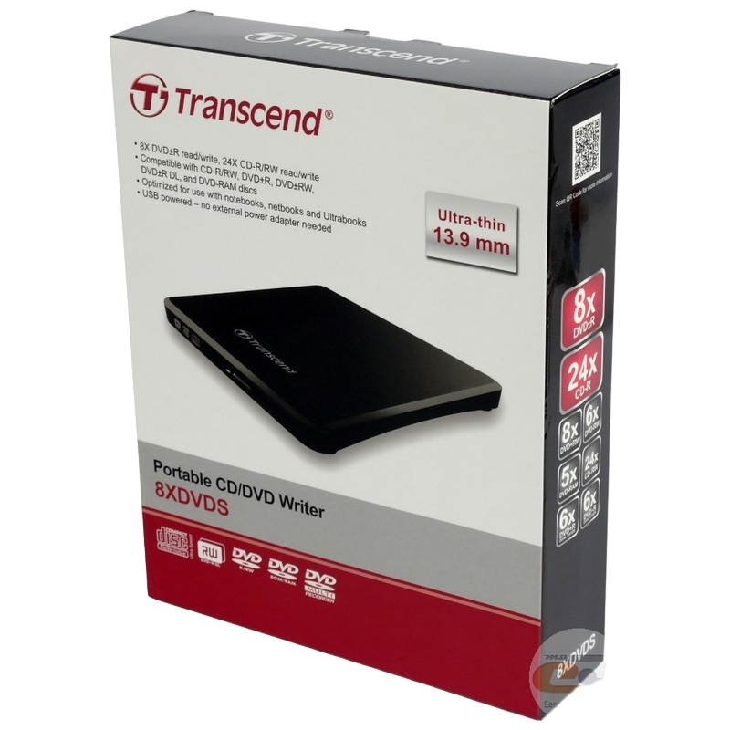 External Slim DVD-RW Drive Transcend "TS8XDVDS", Black, (USB2.0), Retail