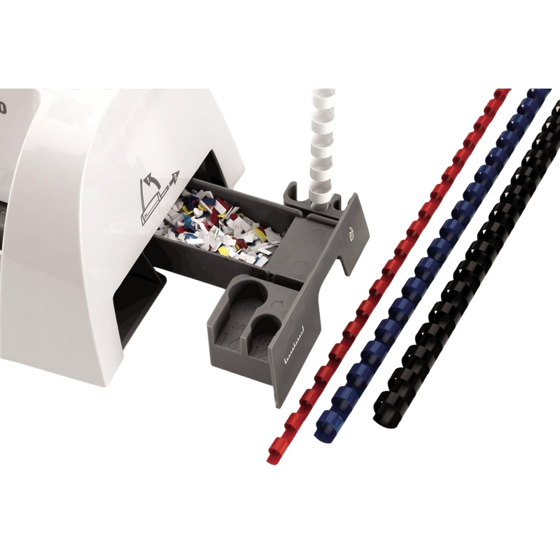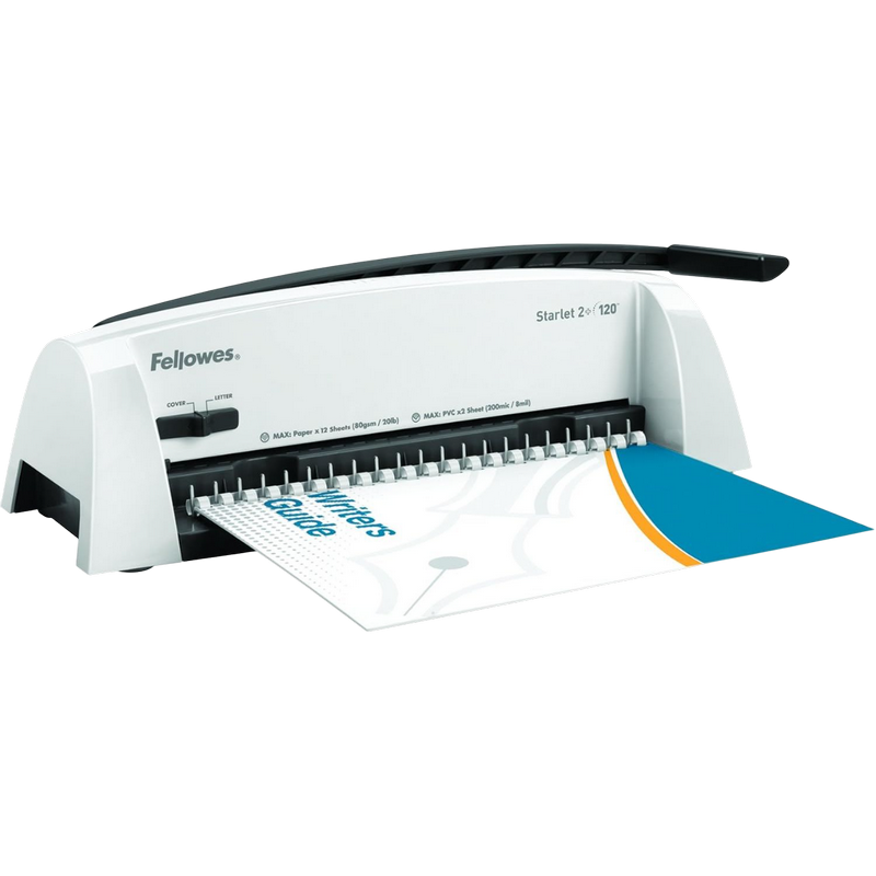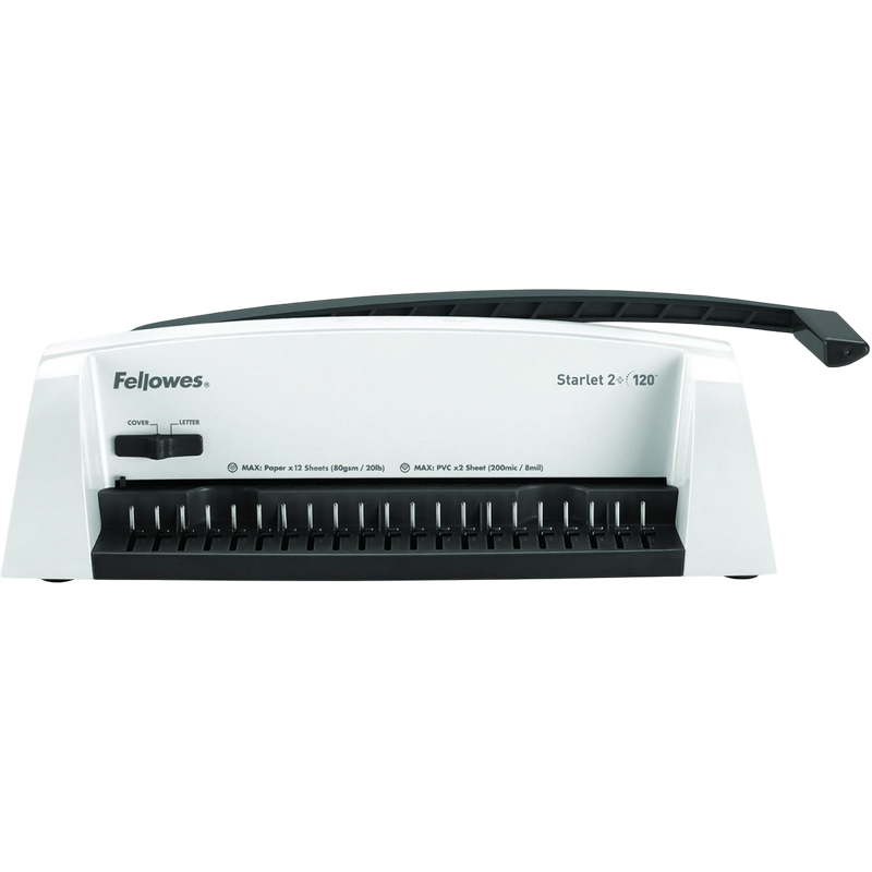 12 sheet punch capacity, 120 sheet binding capacity with a maximum comb size of 16mm 2 position edge guide aligns sheets accurately Patented comb & document measure for quick selection of the correct size supplies Long punch lever requires minimum force for easy punching Independent punch and comb opening mechanisms for more productive binding