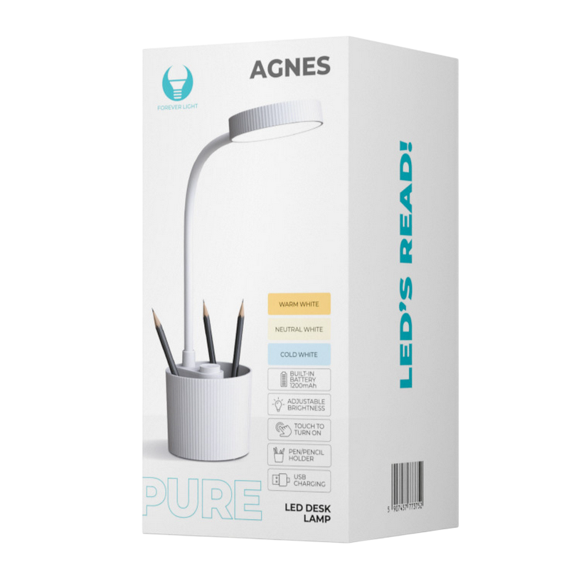 Forever Desk LED Lamp 5W with pen holder PURE FLB-20 AGNES, White