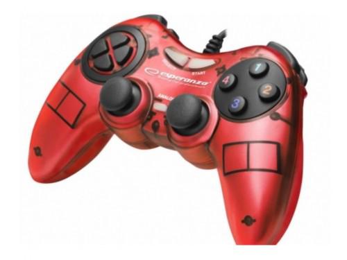 Gamepad Esperanza FIGHTER EGG105R Red, Vibration Game Pad, 16 buttons, 2 sticks, Ergonomic design, 2 modes (analog and digital), Soft sweat-resistant surface coating, PC Win 7,8,10 compatible, USB