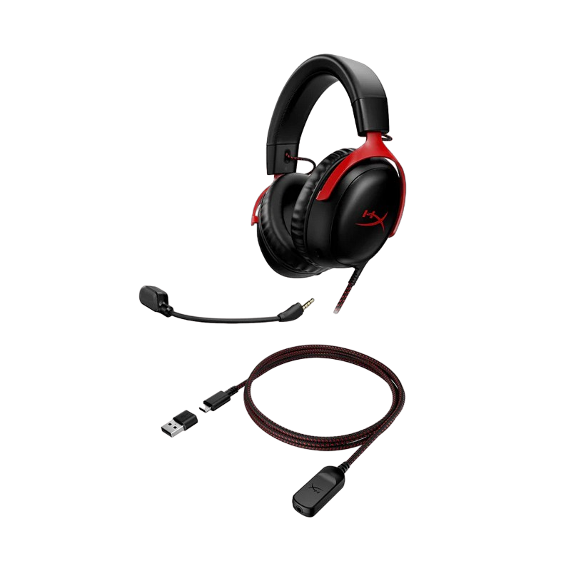 Gaming Headset HyperX Cloud III, 53mm driver, 64 Ohm, 15-21khz, 100db, 320g, Noise-cancelling Mic, DTS, 1.2m+1.3m, 3.5(4pin)+USB+USB-C, Balck/Red