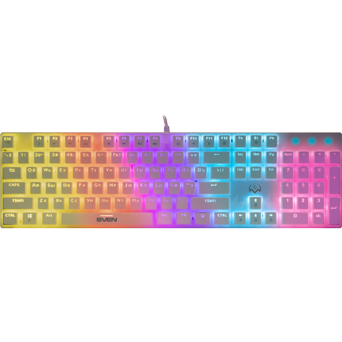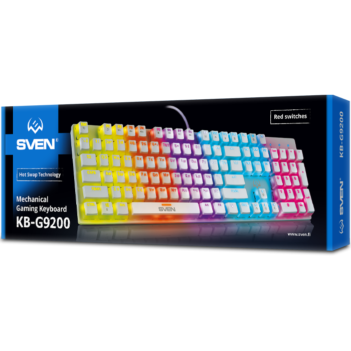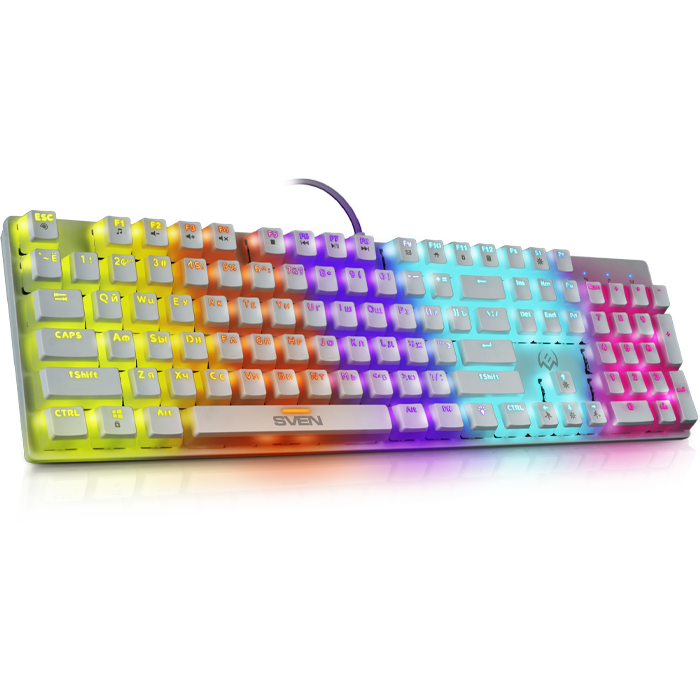 Gaming Keyboard SVEN KB-G9200, Mechanical, Red SW, Fn keys, Win Lock, Anti-Ghosting, Backlight, 1.8m, USB, EN/RU, White