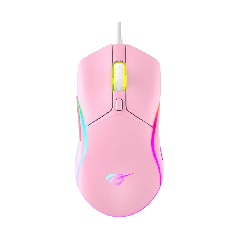 Gaming Mouse Havit MS1029, 1200-7200dpi, 6 buttons, Ambidextrous, RGB, 137g, 1.5m, USB, Pink