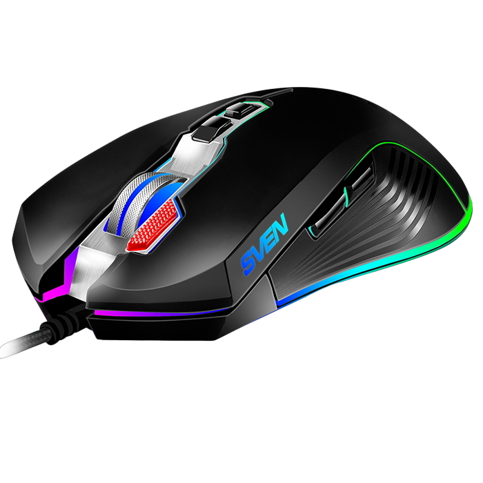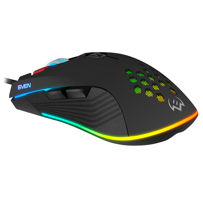 Gaming Mouse SVEN RX-G850, 500-6400 dpi, 8 buttons, 166g., Ambidextrous, Programmable, Built-in memory, RGB, 1.8m, USB, Black