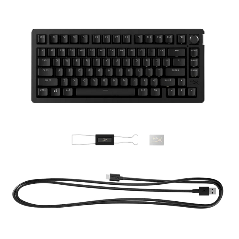 . PN: 91Y91AA#ACB Product name HyperX QuadCast 2 - USB Microphone (Black) Product number 872V1AA Product Primary Color Black Power consumption description 5V 240mA (all lights on); Impedance 1 Q; Power output maximum >7mW Compatibility statement PC, Mac, PS4, PS5, Nintendo Switch, Steam Deck. Software Compatibility: HyperX NGENUITY. USB specification USB 2.0 (full speed) Cable length (metric) 3 m; Light effects 16 zones; Total harmonic distortion < 0.05% (1kHz/0dBFS); Connection type USB-C, 3.5mm headphone output; Element Three 14mm electret condenser capsules; Polar pattern Cardioid, omnidirectional, stereo, bidirectional; Frequency response (headphone) 20Hz - 20kHz; Cable type USB-C to USB-C with U5B-A adapter; Signal-to-noise ratio > 100dB (at IkHz/OdBFS, A-weighted); Frequency response (microphone) 20Hz - 20kHz; Sensitivity (microphone) ’-7.5dB (1 V/Pa at 1 kHz); Sampling rates 44.1kHz, 48kHz, 96kHz; Bit-depth 16-bit, 24-bit; Lighting Red; Noise (RMS) (headphone) <-110dBV (A-weighted); Noise (RMS) (microphone) <-77dBV (A-weighted) Metric Weight (Microphone) 335 g; (Shock mount and stand) 137 g; (Microphone stand) 273 g; Total Weight (with cable) 819 g. HyperX QuadCast 2 USB Microphone, 3m USB-C to USB-C cable, USB-C to U5B-A adapter, Quick Start Guide.