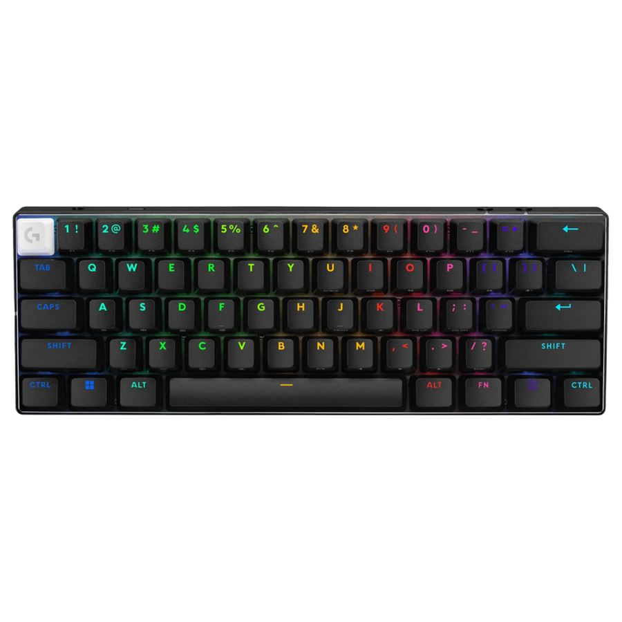 . English keys only!!! PN: 920-011911 Specs & Details Dimensions Physical Specifications Height 290 mm Width 103 mm Depth 39 mm Technical Specifications Pro-inspired 60 percent design KEYCONTROL LIGHTSYNC RGB lighting Onboard lighting profiles 6 ft detachable cable 1 ms report rate Wireless Battery Life (rechargeable) up to 65 hours Wireless Range up to 10 m Connection Type 2.4GHz LIGHTSPEED, Bluetooth®, or USB wired connection