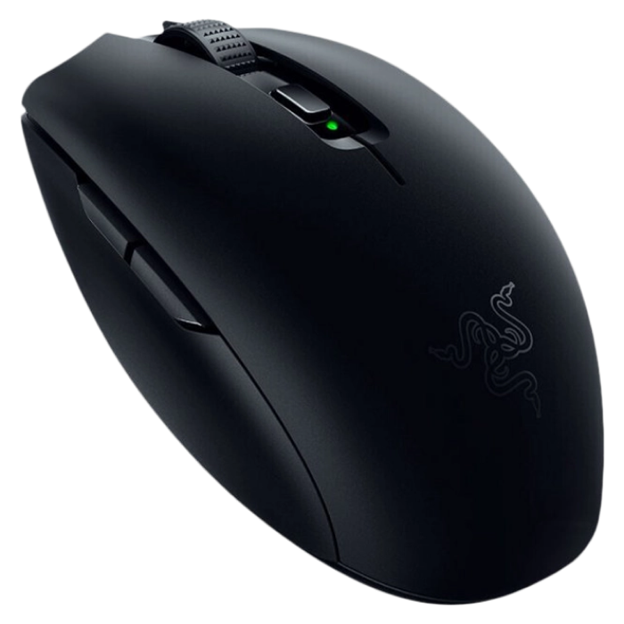 . FORM FACTOR Right-Handed CONNECTIVITY Razer™ HyperSpeed 2.4GHz wireless + Bluetooth® BATTERY LIFE Up to 425 hours (2.4Ghz), 950 hours (BLE) with included AA battery RGB LIGHTING None SENSOR Optical MAX SENSITIVITY (DPI) 18000 MAX SPEED (IPS) 450 MAX ACCELERATION (G) 40 PROGRAMMABLE BUTTONS 6 SWITCH TYPE 2nd-gen Razer™ Mechanical Mouse Switches SWITCH LIFECYCLE 60 Million Clicks ON-BOARD MEMORY PROFILES 1 MOUSE FEET Undyed PTFE mouse-feet CABLE None TILT SCROLL WHEEL None APPROXIMATE SIZES Length: 108.0 mm / 4.25 in Width: 62.6 mm / 2.46 in Height: 38.5 mm / 1.50 in APPROXIMATE WEIGHT < 60 g / < 2.2 oz (Mass centralized)