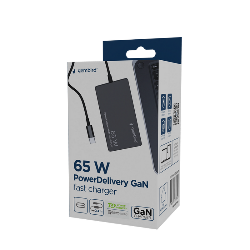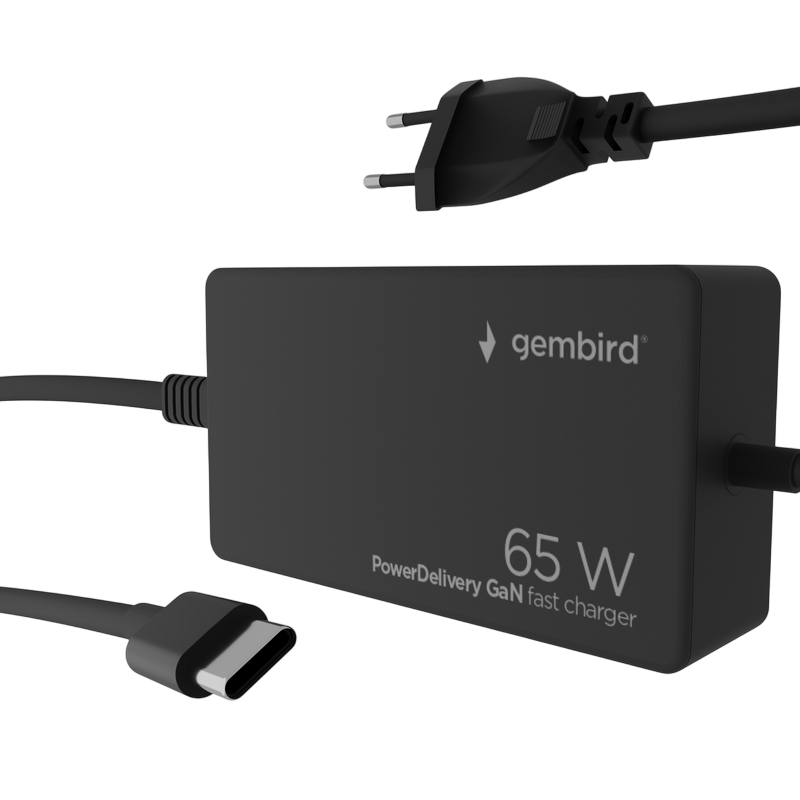 Gembird, 65W PowerDelivery GaN Type-C fast charger, Black, NPA-AC-PDQC65-01