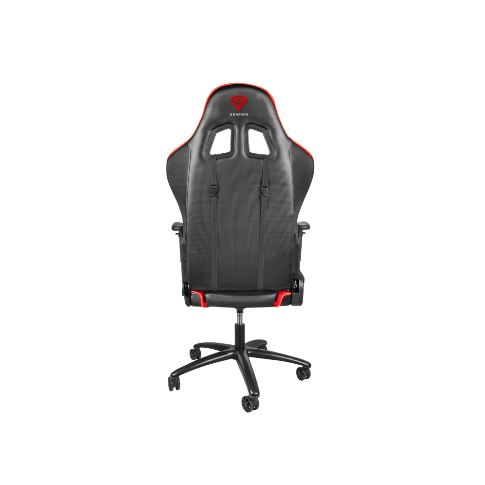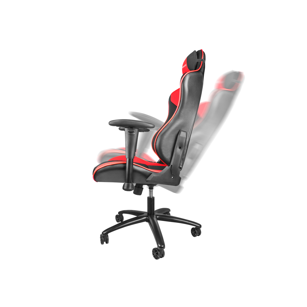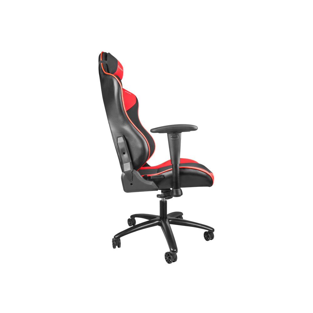 Scaunul are un stil inspirat din scaunele auto de curse, oferind un aspect dinamic si elegant in negru si rosu.
