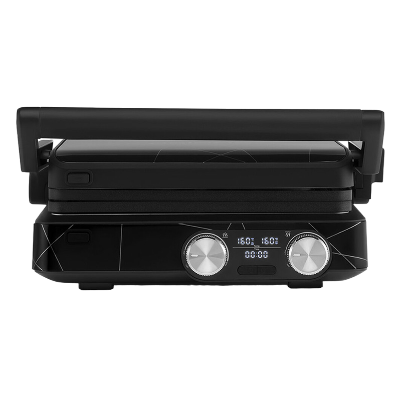 Putere: 2000 W Design Grătar: cu două plăci Tip control: Electronice Reglare temperatură Suprafața gătire: 29 × 23 cm Temperatura maximă incalzire : 230 °С Suprafață Anti-aderentă Plăci detașabile Tava pentru suc și grăsime