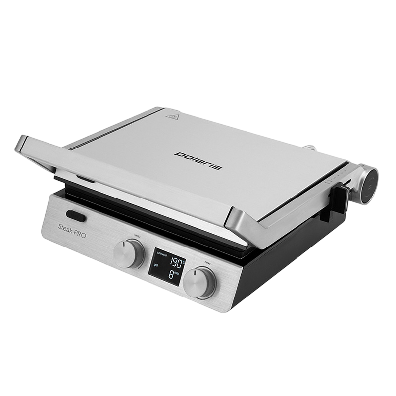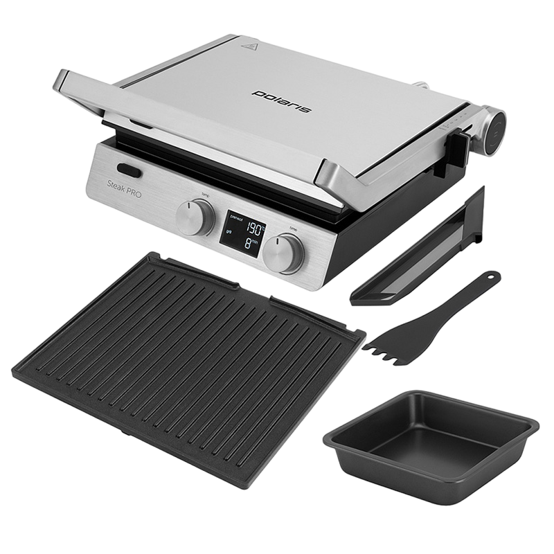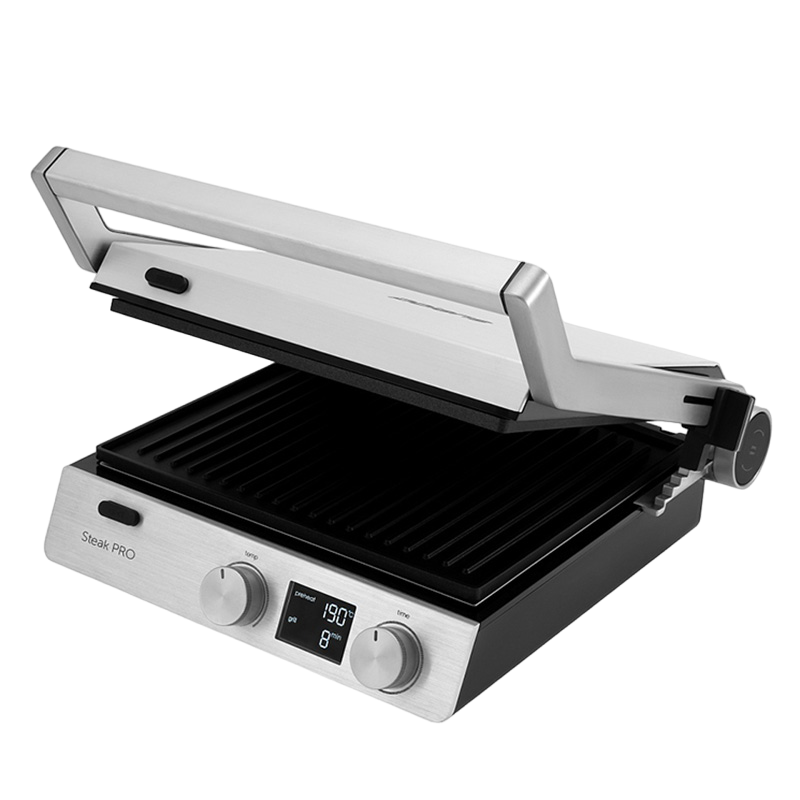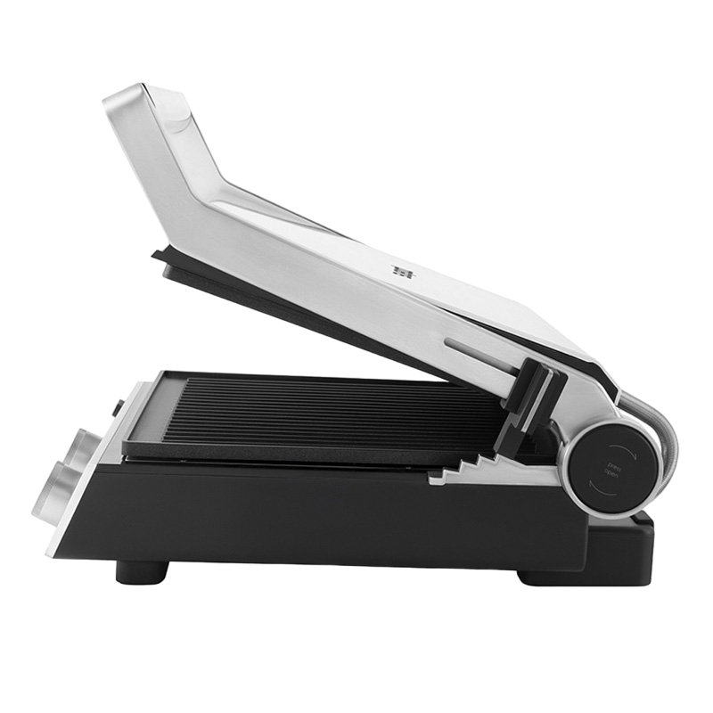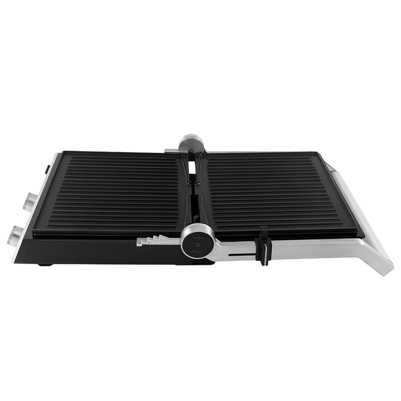 Putere: 2000 W Design Grătar: cu două plăci Tip control: Mecanic Reglare temperatură Suprafața gătire: 29 x 25,5 cm Temperatura maximă incalzire : 240 °С Suprafață Anti-aderentă Plăci detașabile Tava pentru suc și grăsime