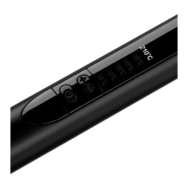 . Roller diameter 25-13mm, 6 temperature adjustments up to 210°C, display, ceramic surface, fast heat-up, auto power off, swivel cord, black pink