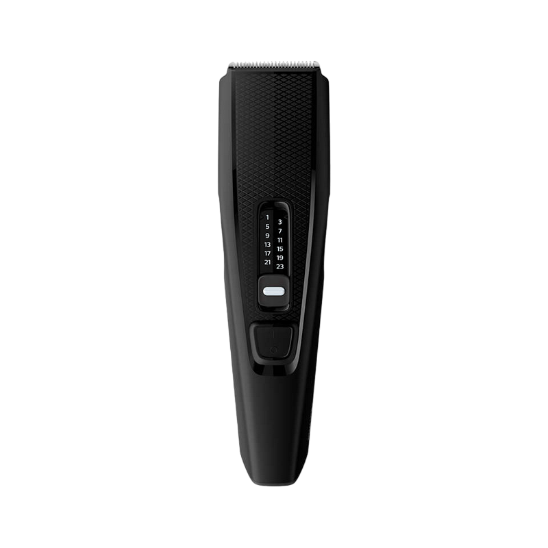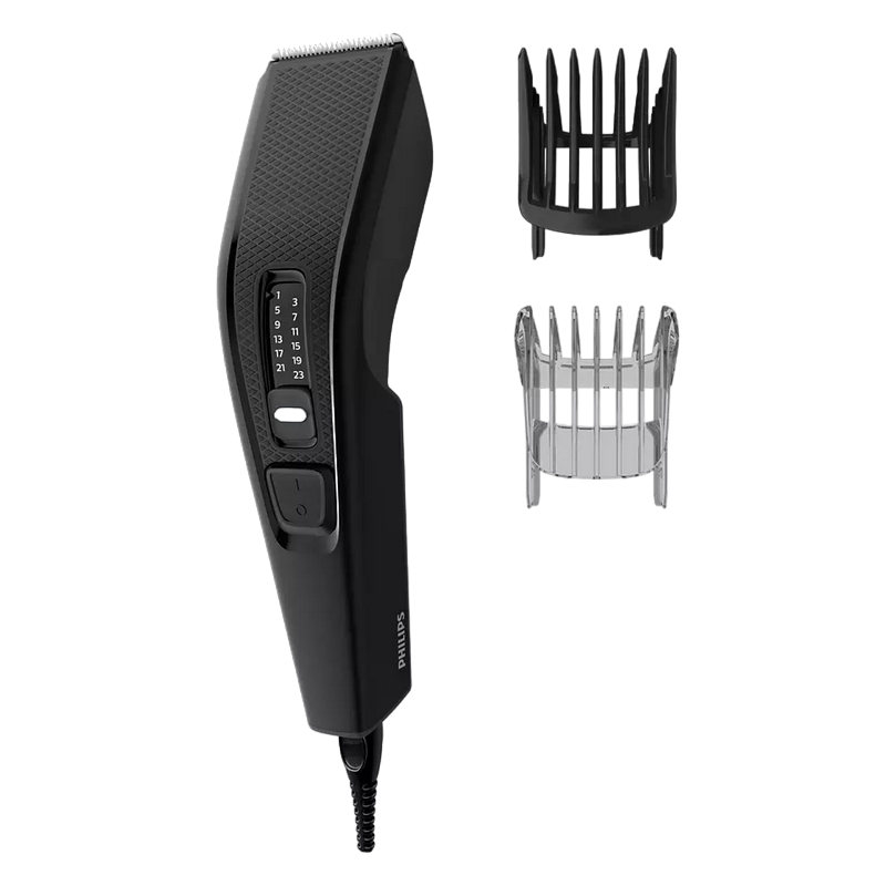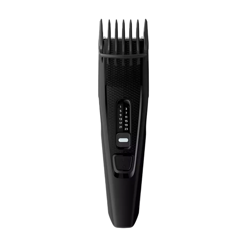 , Mains operation, 13 cutting lengths (0.5-23mm in 2mm steps), cutting width 41mm, comb attachment, self-oiling, automatic voltage adjustment 110-230V, cleaning brush, beard comb, black