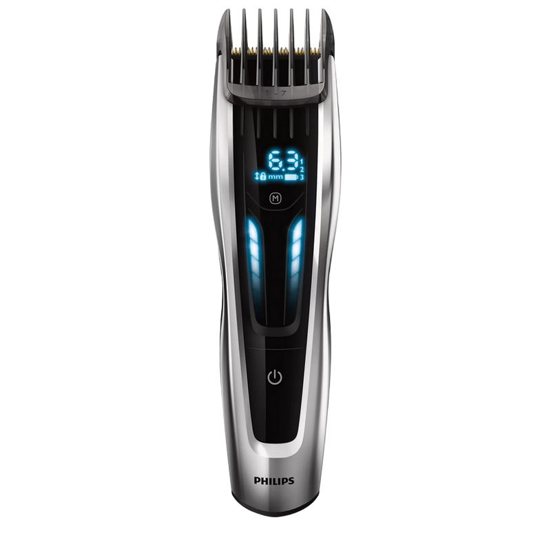 Mains operation/rechargeable battery operation (operating time120 minutes, charging time 1 hour), 400 cutting lengths (0.5-42mm), 3x comb attachment titanium blades, memory function, black silver