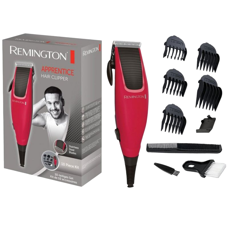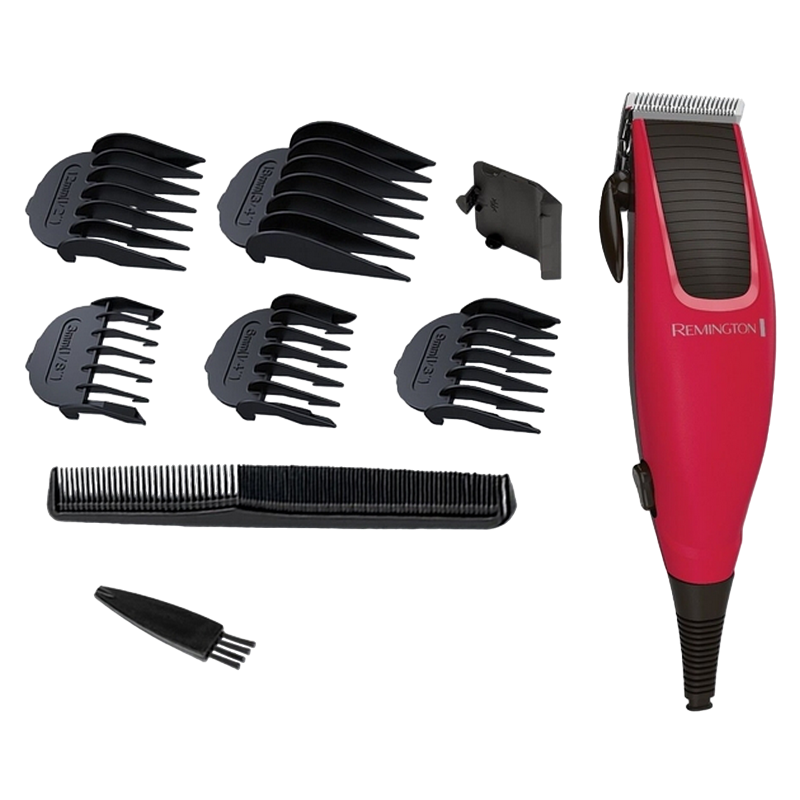 Mains operation, 6 cutting lengths (3-18mm), cutting width 41mm, 5x comb attachment cleaning brush, comb, neck brush, red