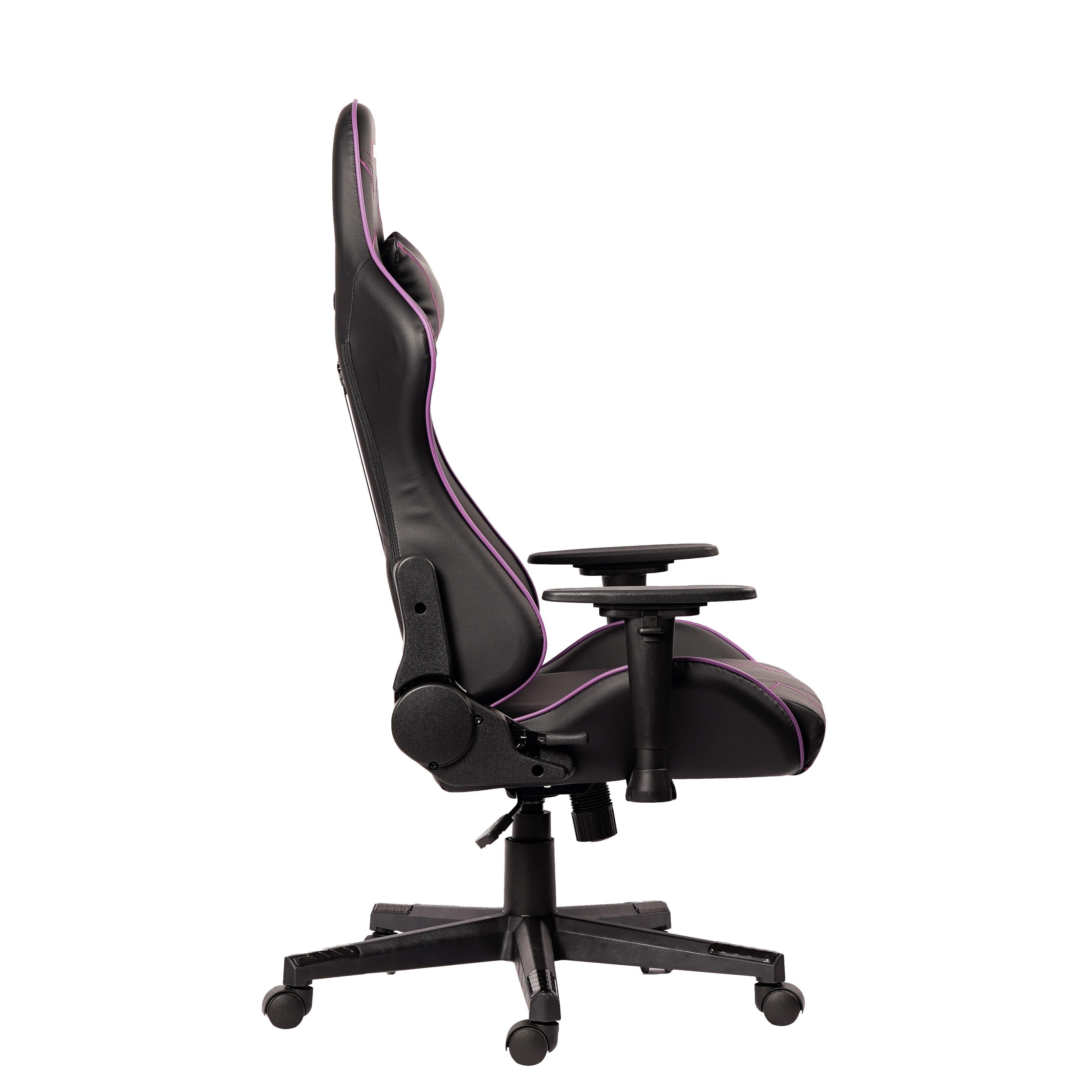 Combinatia de negru si mov ofera un aspect modern si vibrant, potrivit pentru setup-uri de gaming sau birou.